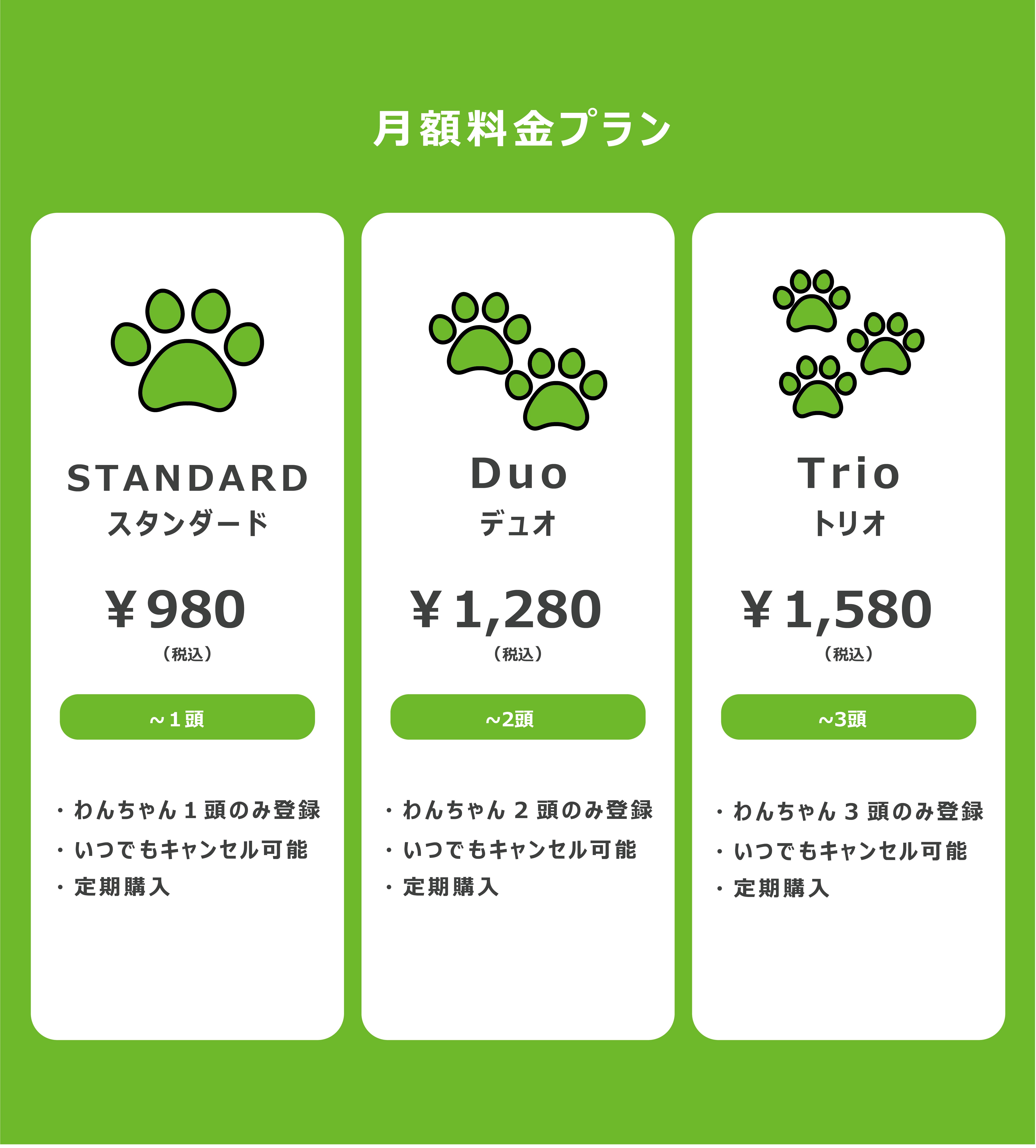 スタンダードプラン以降は多頭飼いの飼い主さま向けとなりますが1名の飼い主さまにつき、登録できる犬は最大3匹までとさせていただいております。(※ドッグラン内での安全性確保のため)