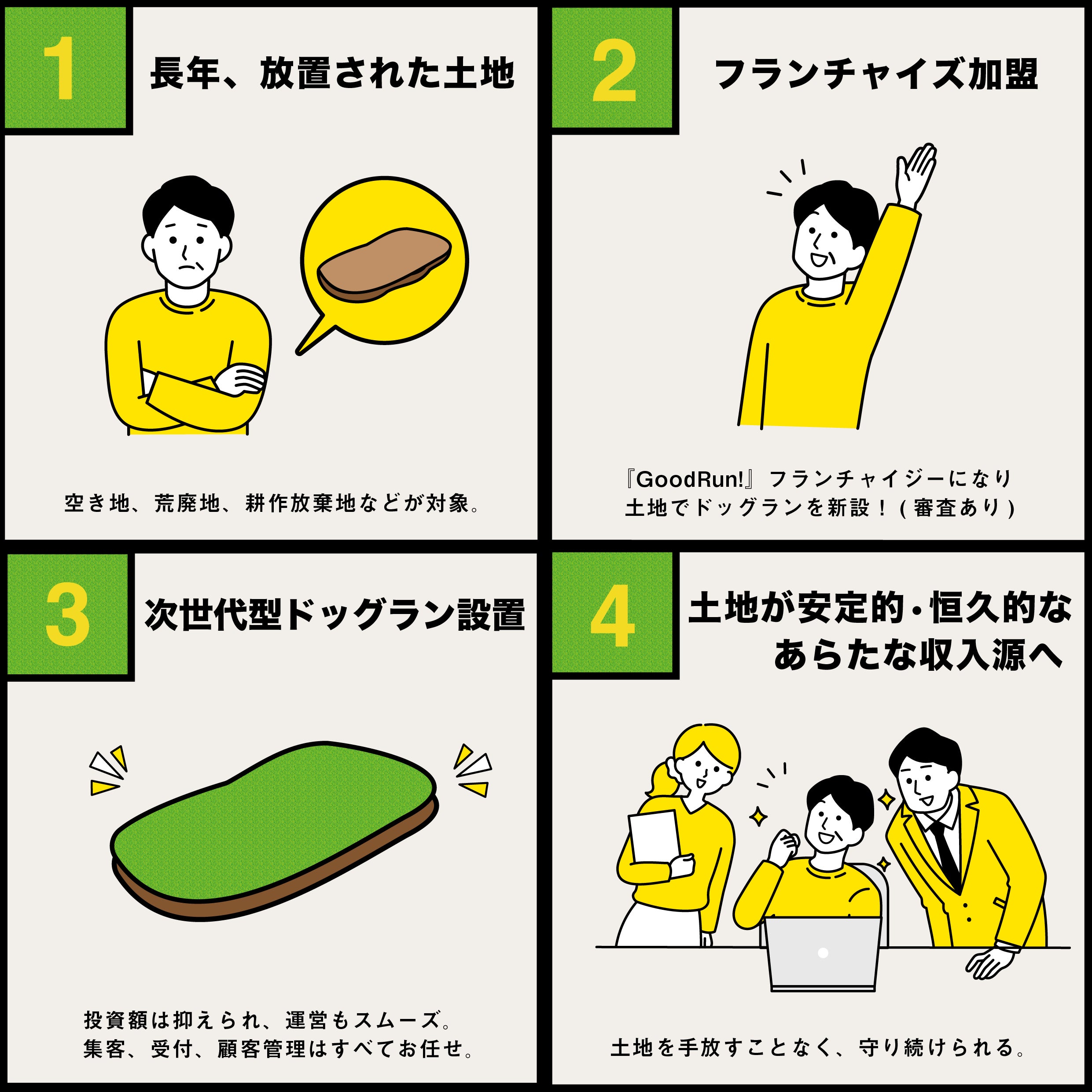GoodRun!なら、土地のオーナーさまと協力し、日本の空き地をドッグランとして再活用できる仕組みづくりが可能に!
