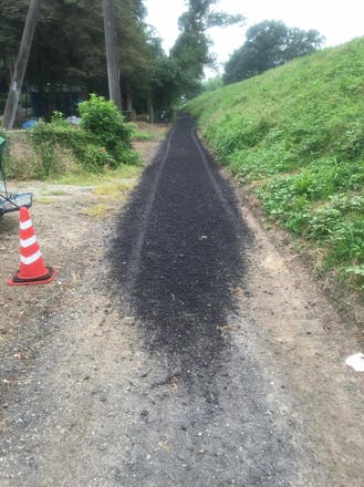 まずはおとぎ町前の公道!おとぎ町スタッフグループで「雨が降るとぐちゃぐちゃになる前の道路をなんとかしないと!」と伝えたところ、スタッフの1人で建築士の方がお役所に1本の電話を入れてくださいました。舗装は難しいものの、整地して砂利を入れてくれるとのことで、実際にやってくださったものがこちらの写真。