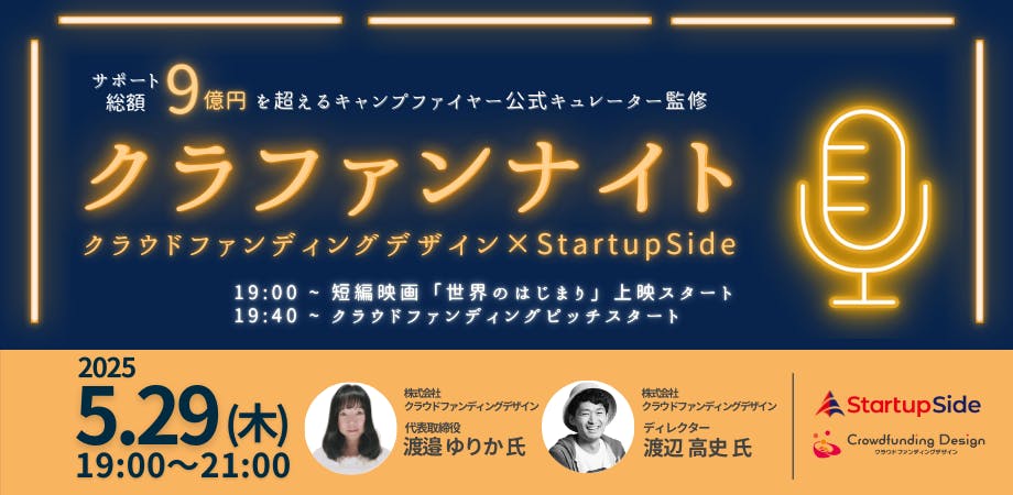 5/29(木)19時より、守谷にあるStartupSide Moriyaというコワーキングスペースにて開催される「クラファンナイト ~Series Pitch~クラウドファンディングデザイン×StartupSide【in守谷】」にて、トップバッターで上映されます。