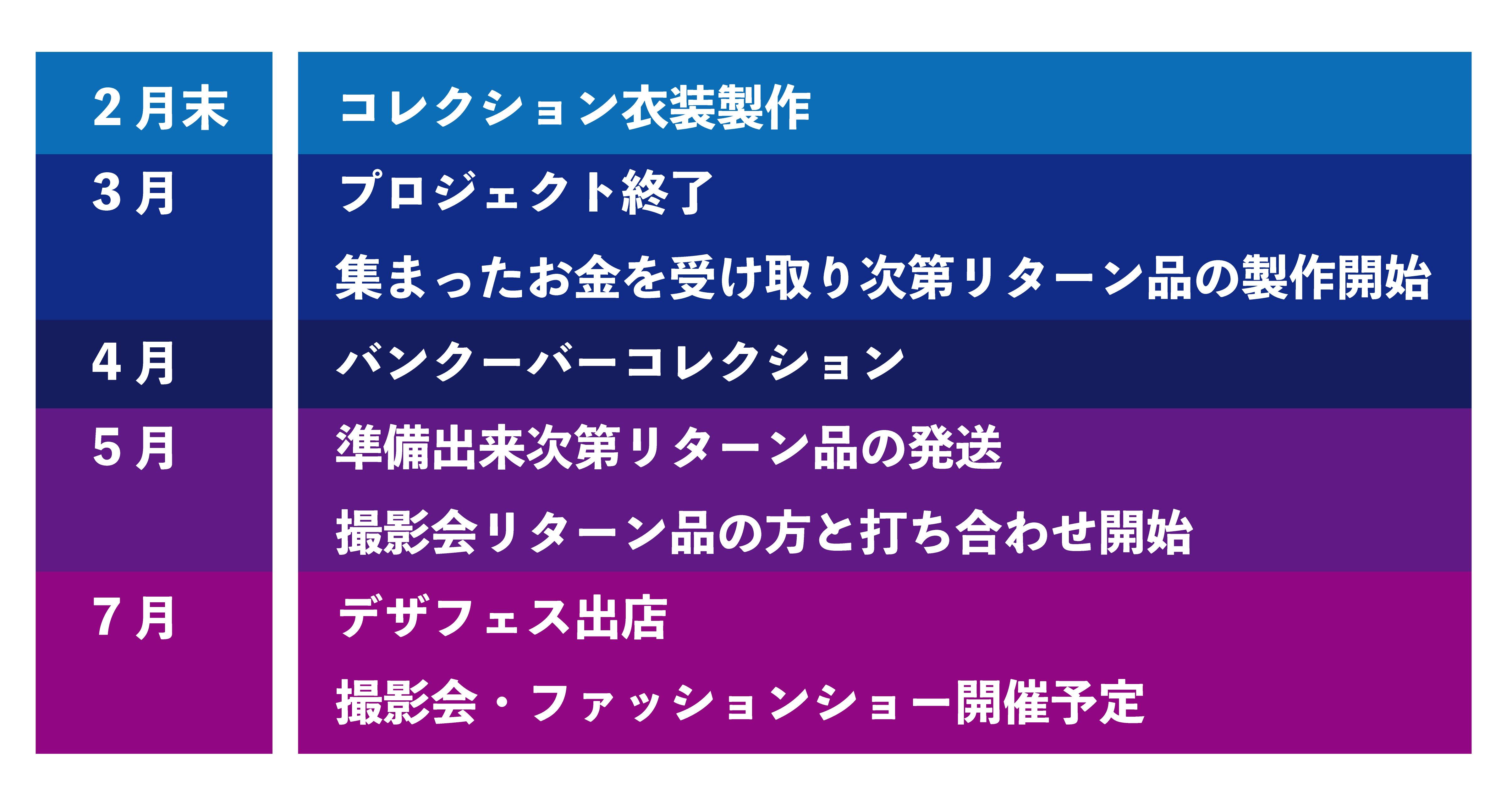 さて、今回セカンドチャレンジとして再び同じプロジェクトを立ち上げた理由としましては、前回のプロジェクトの資金使途の一つとして材料費や渡航費等が含まれておりましたが、皆様からのご支援をすべて参加費に充てたため、制作費や渡航費等が不足してしまい、このままでは納得のいく最高のコレクション作品を生み出すことも、自分たちの目で海外の方々の反応を見ることも叶わなくなるのは、前回のプロジェクトを立ち上げた意味もなくなってしまうと思い、今回セカンドチャレンジとしてご支援を賜りたく、プロジェクトを立ち上げました。