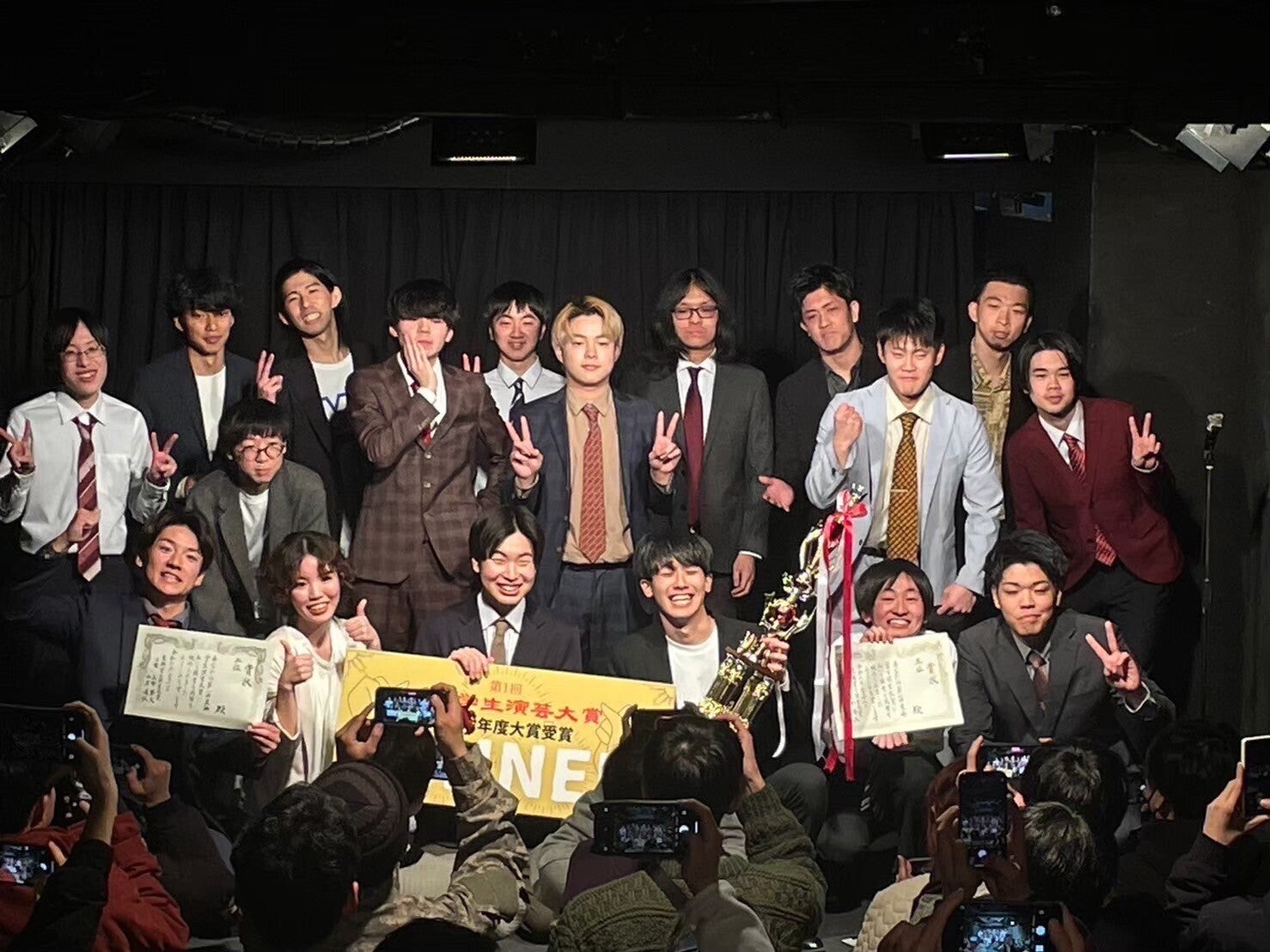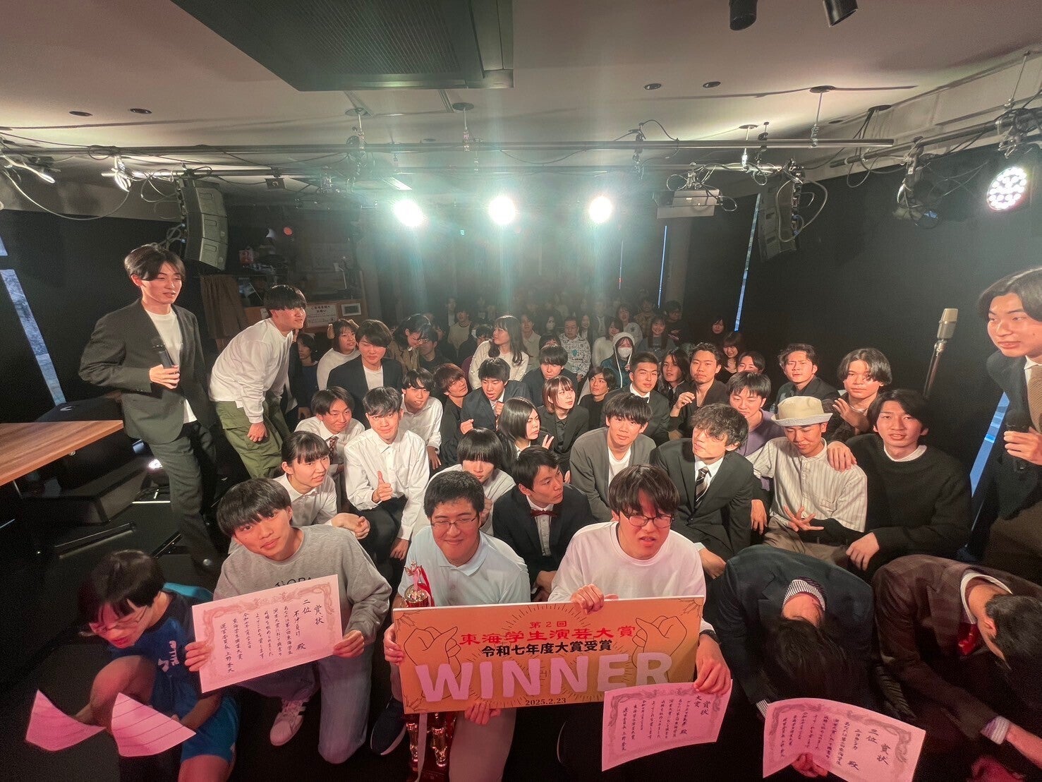 2025/02/25 15:522月23日(日)無事、第二回東海学生演芸大賞が開催されました。皆様の支援で大会は大成功いたしました。優勝したプラズマ万馬券の爆発力ある漫才はもちろん出場してくれた全芸人さんが爆発的に笑いを獲る最高のイベントとなりました。改めて皆様への感謝をお伝えさせて頂きたいです。本当にありがとうございました。また、今後とも東海学生演芸は新しいイベントも創出しながら東海地方の学生さんたちのための活動を参ります。何卒、これからも応援お願いいたします!!東海学生演芸大賞スタッフ一同 もっと見る