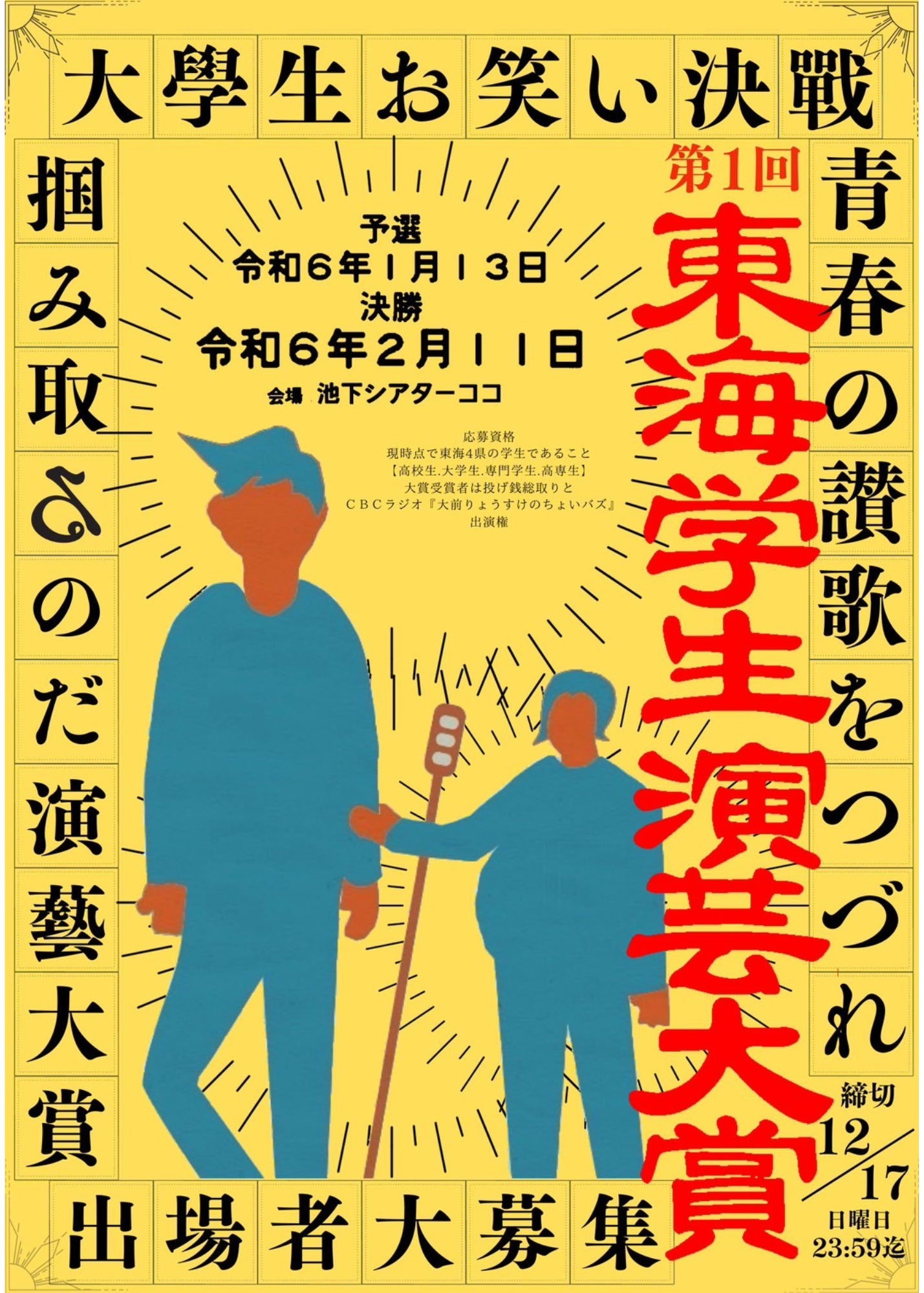 新しいお笑いコンテスト「東海学生演芸大賞」です。