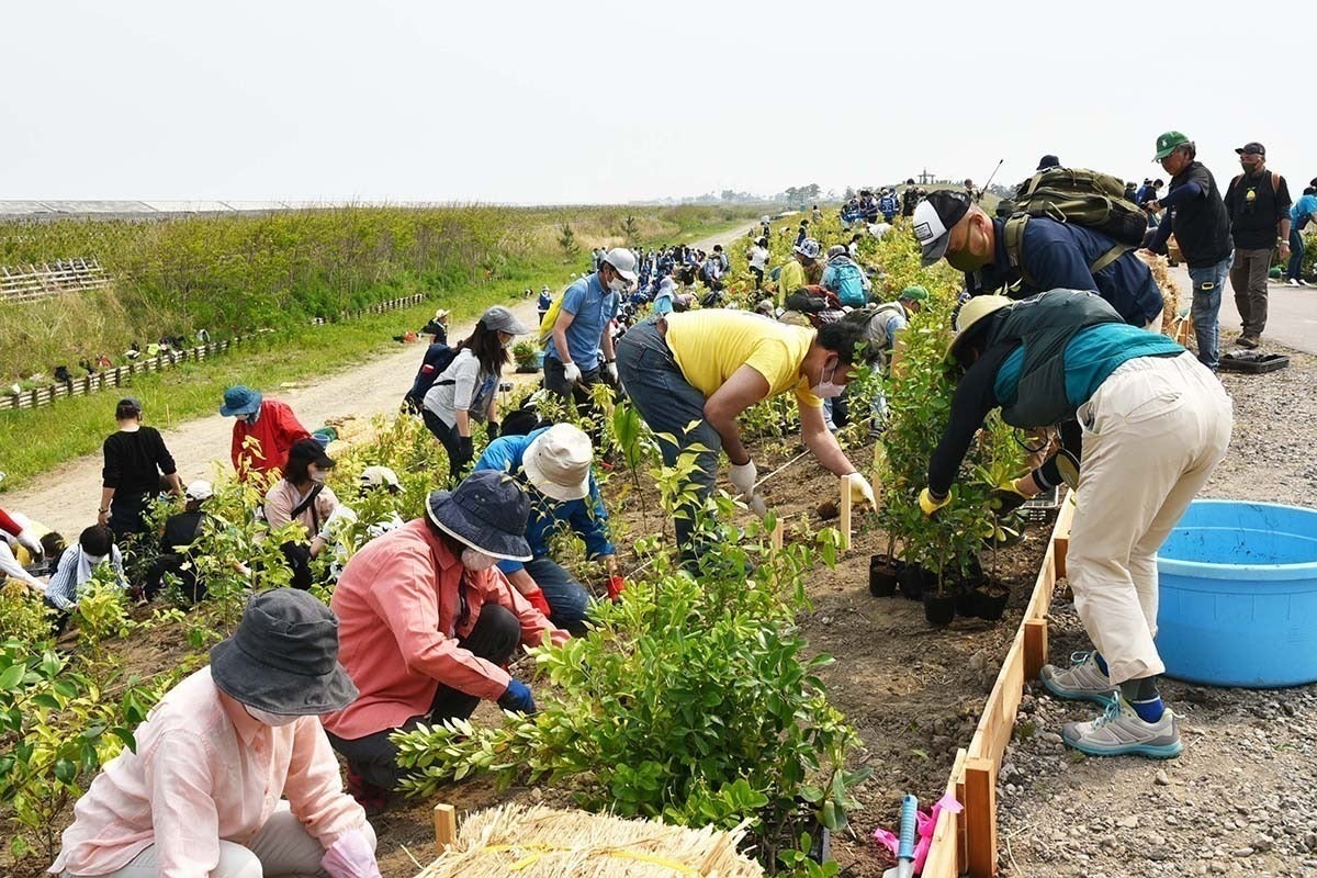 この植樹祭では、耐久中学の生徒や地元小学生の児童、保護者、全国からの植樹ボランティアが一堂に会し、広村堤防の再興と未来の防災のシンボルとなる森づくりに取り組みます。