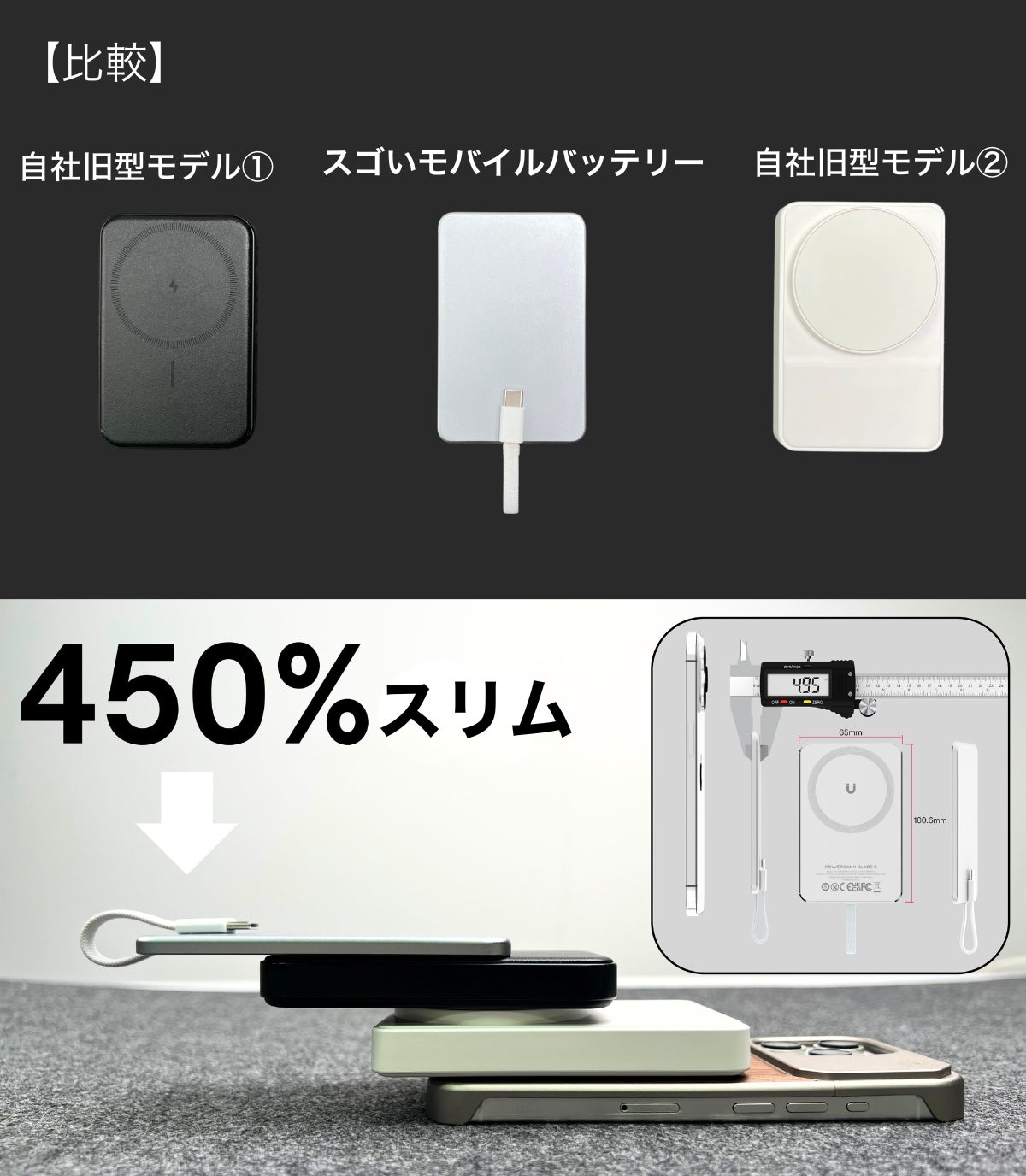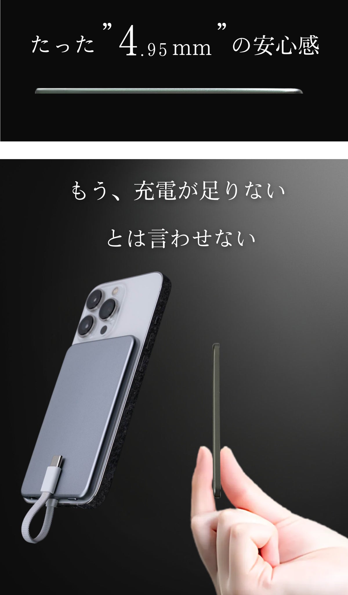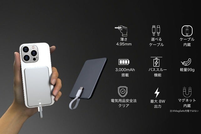 スーツポケットやビジネスバッグに収まり、急な電池切れでも会議前にさっと充電。