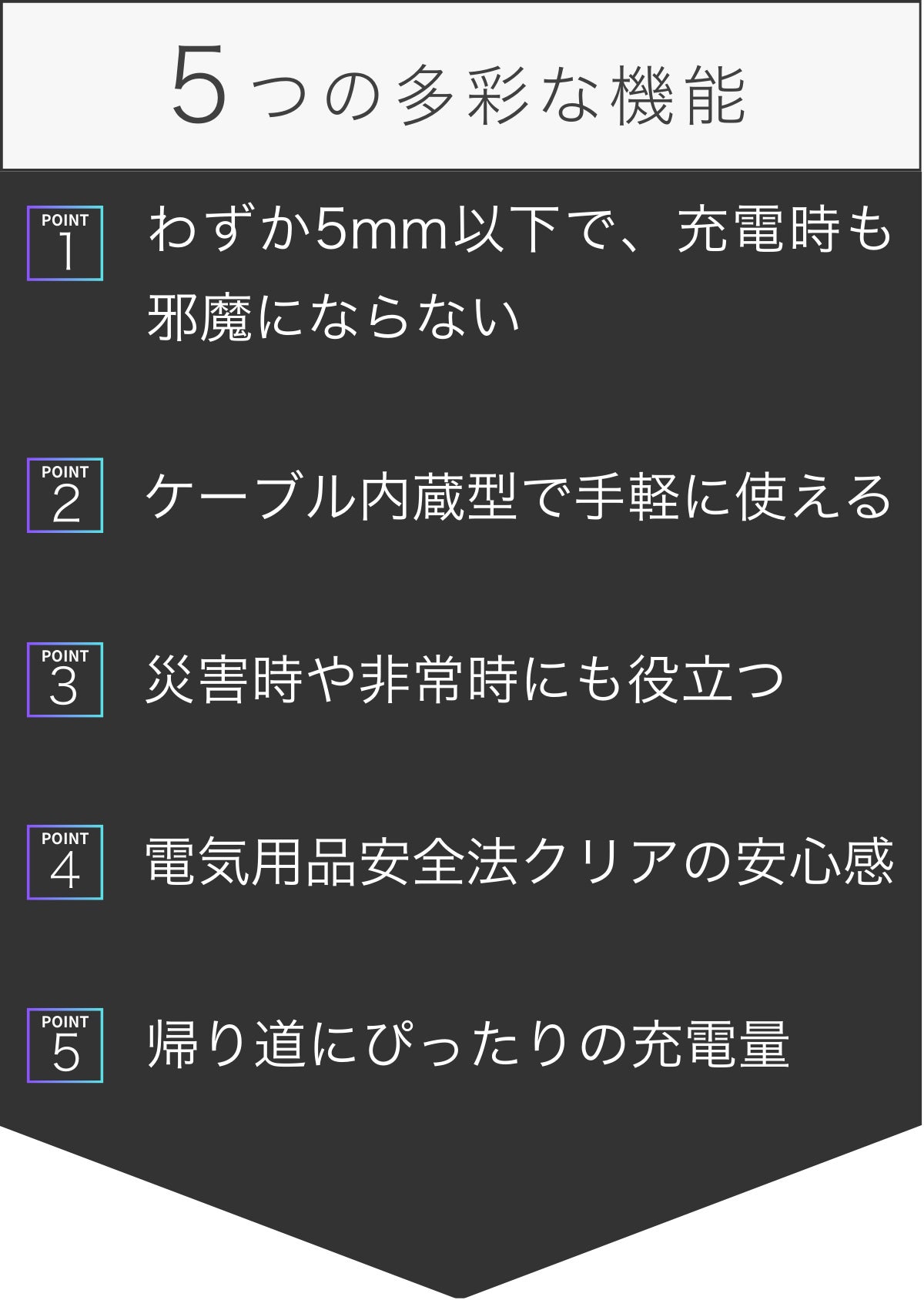 帰り道に「あと少しの充電がほしい」という状況にぴったり。