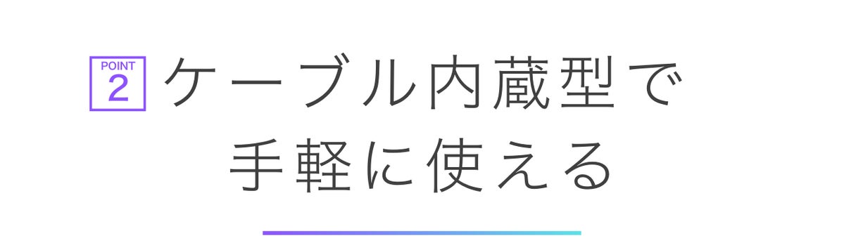 充電ケーブルが内蔵されているので、ケーブルを忘れても安心。すぐに使える手軽さ。