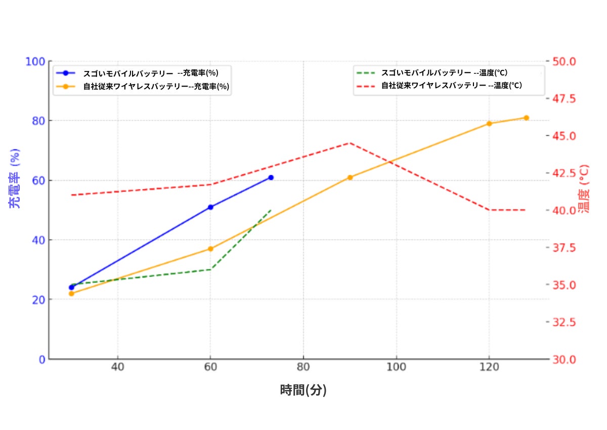 バッテリーが残りわずかでも、スマホを使い続けたい時にちょうどよく充電できるため、いざという時に安心を提供します。