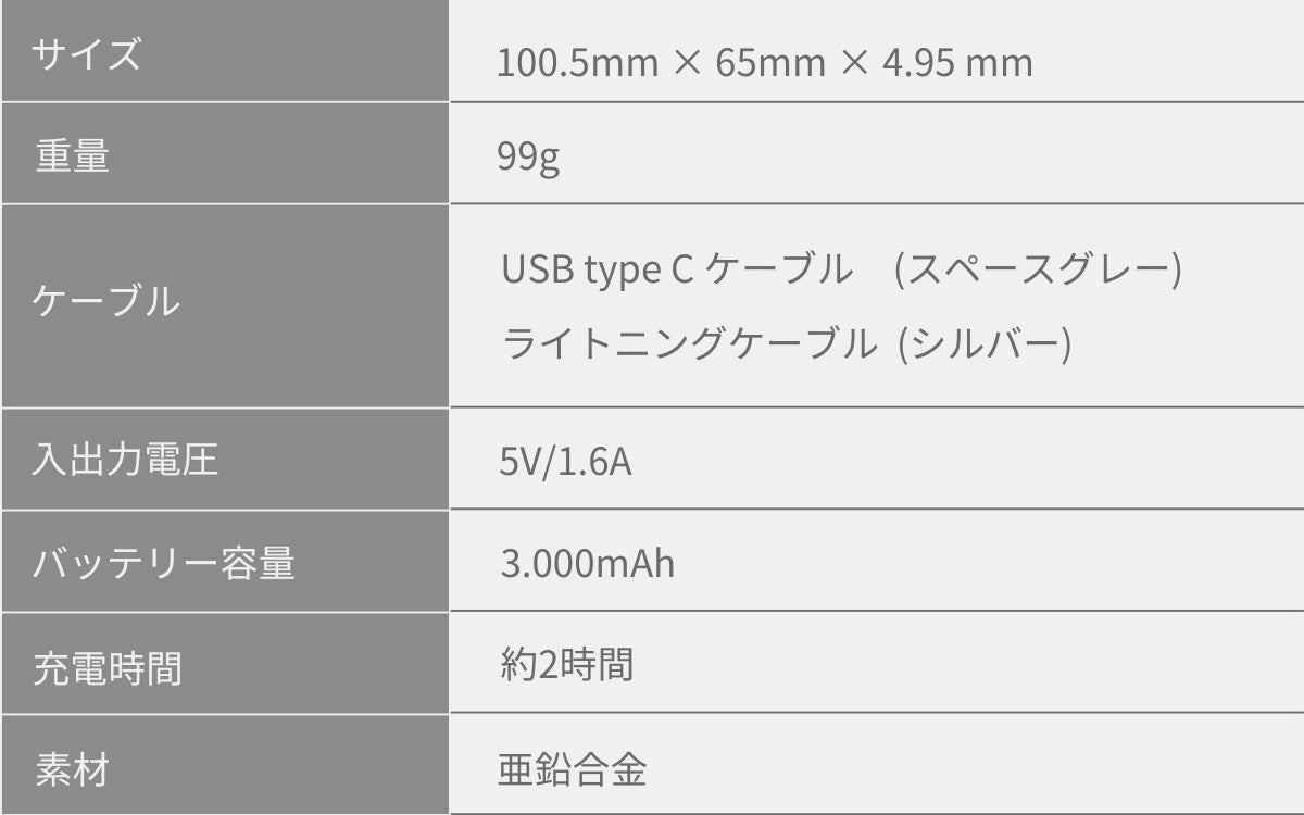 ※TypeCケーブルはスペースグレー、ライトニングケーブルはシルバーになります。