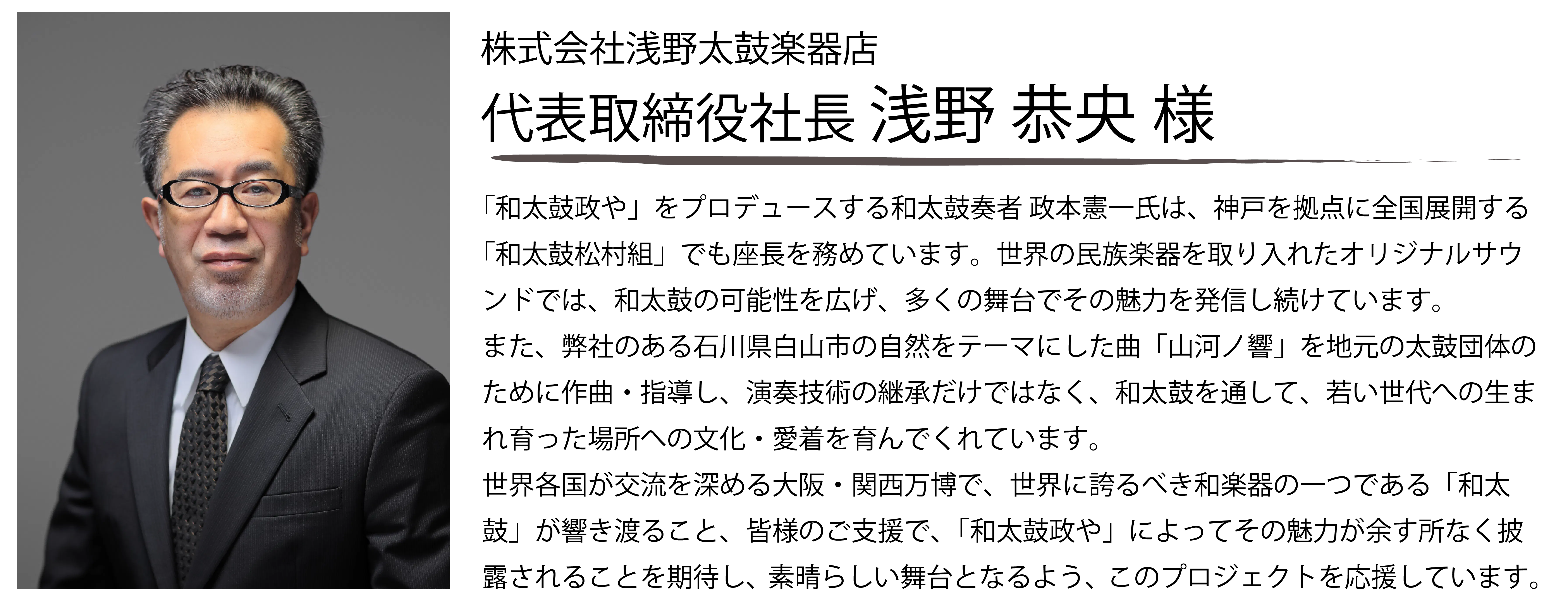 また2016年には、出身地である大阪府高槻市に「和太鼓政や」を設立。