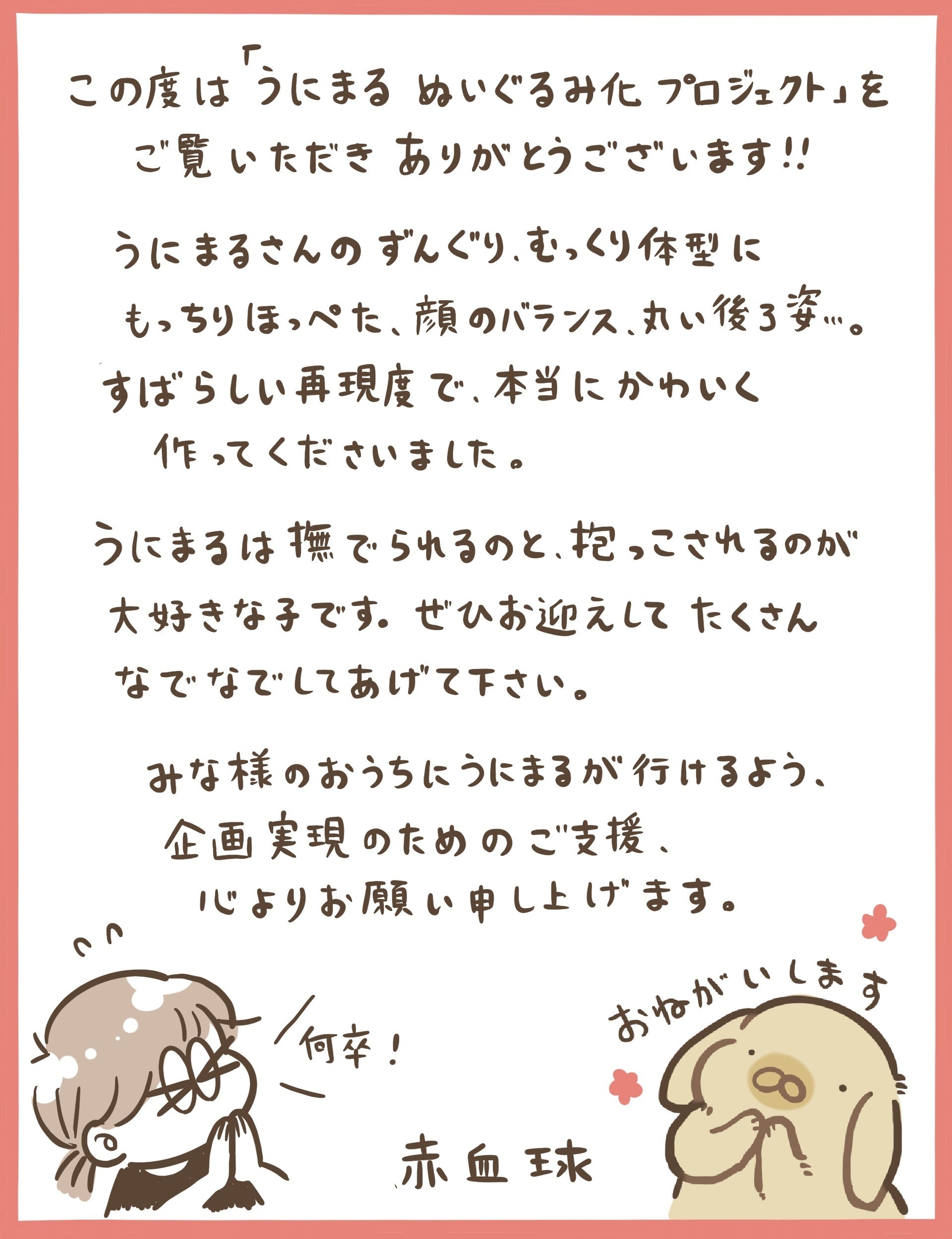 赤血球が描くうさぎの「うにまる」がぬいぐるみ化に挑戦します!