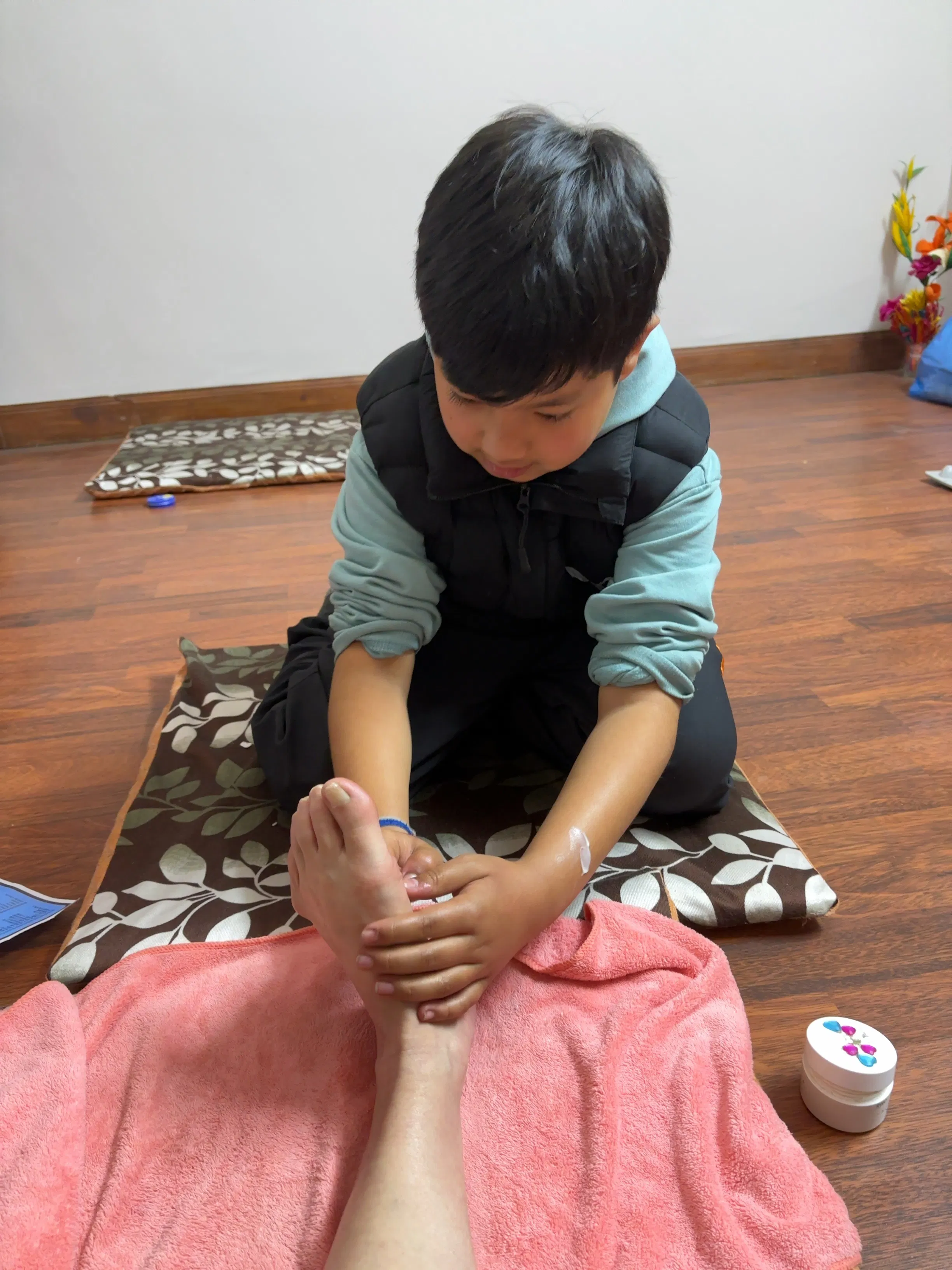 10歳の子どもが足揉みしてあげるよって。