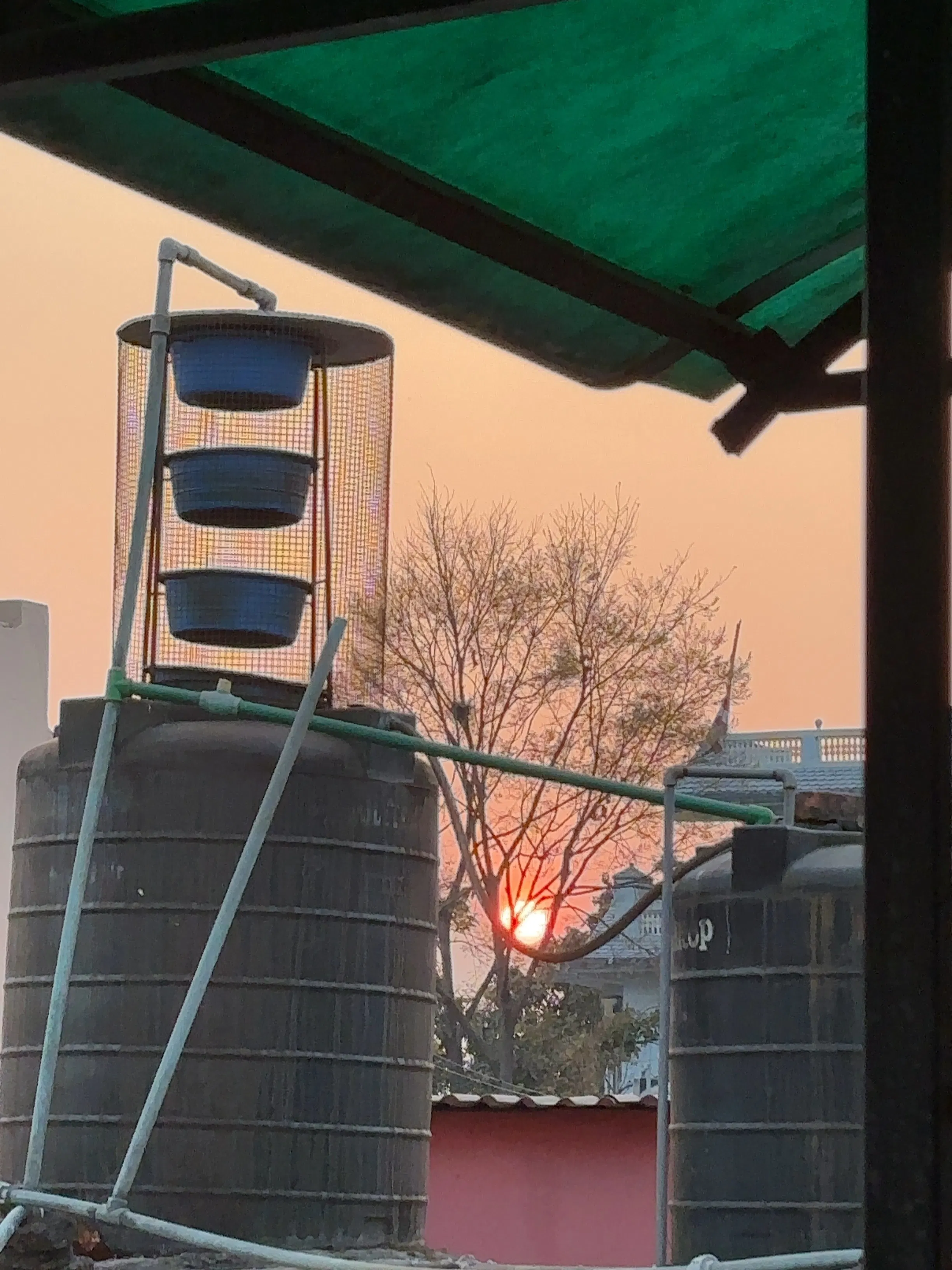 宿泊先のお宅のテラスから見えた夕日です。
