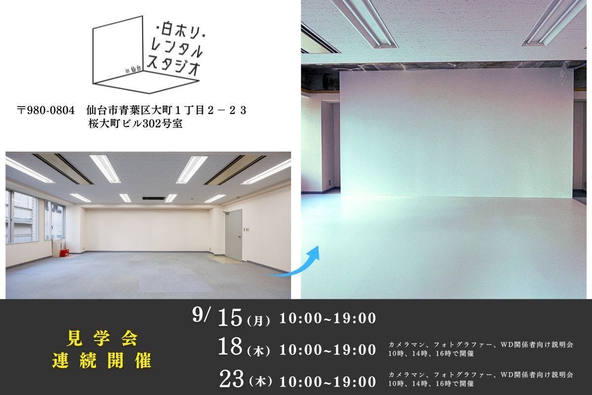 〜スタジオ料金〜皆様から「スタジオ料金は、新しいスタジオでいくらになったの?」と聞かれることが多くなりましたので、改めましてご案内させていただきます。当スタジオは機材利用や利用人数に関係なく『1時間:5,000円税込』となっております。・スタジオ内にある機材利用料込み・ご自身の機材持ち込みもOK・何名様のご利用でも料金変わりません。(10名ほど入ると狭く感じてくるかもしれません)〜スタジオの概要と利用料金 すべて税込金額〜◯営業時間:6:00〜22:00 16時間営業◯完全無人運営 予約-決済-入室-退室 までスタッフと会うことがありません。◯機材状況抜粋:ストロボ3灯、LEDライト6灯(内調色タイプ4灯)、ソフトボックス5個、アンブレラ6個、Cスタンド3個など。◯フォトグラファー利用にも動画撮影にも快適な環境、機材を揃えました。通常価格→クラファン価格1時間利用:5,000円→3000円!2時間利用:9,500円→7500円!3時間利用:13,500円→10,500円!4時間利用:18,000円5時間利用:22,500円6時間利用:27,000円→21,000円!7時間利用:31,500円8時間利用:36,000円→28,000円!1日利用:55,000円 →38,500円クラファンでしか提示できない特別価格となります!■見学会日程 9月23日(火・祝日)開催時間:10時〜19時:お好きなお時間にお越しください9月26日(金) 開催時間:10時〜19時お好きなお時間にお越しください9月30日(火)開催時間:11時~17時:お好きな時間にお越しください※9/30 11時30分〜12時30分までオンラインMTG対応のため、接客ができない時間帯がございますが自由に見ていただいて問題ございません。
