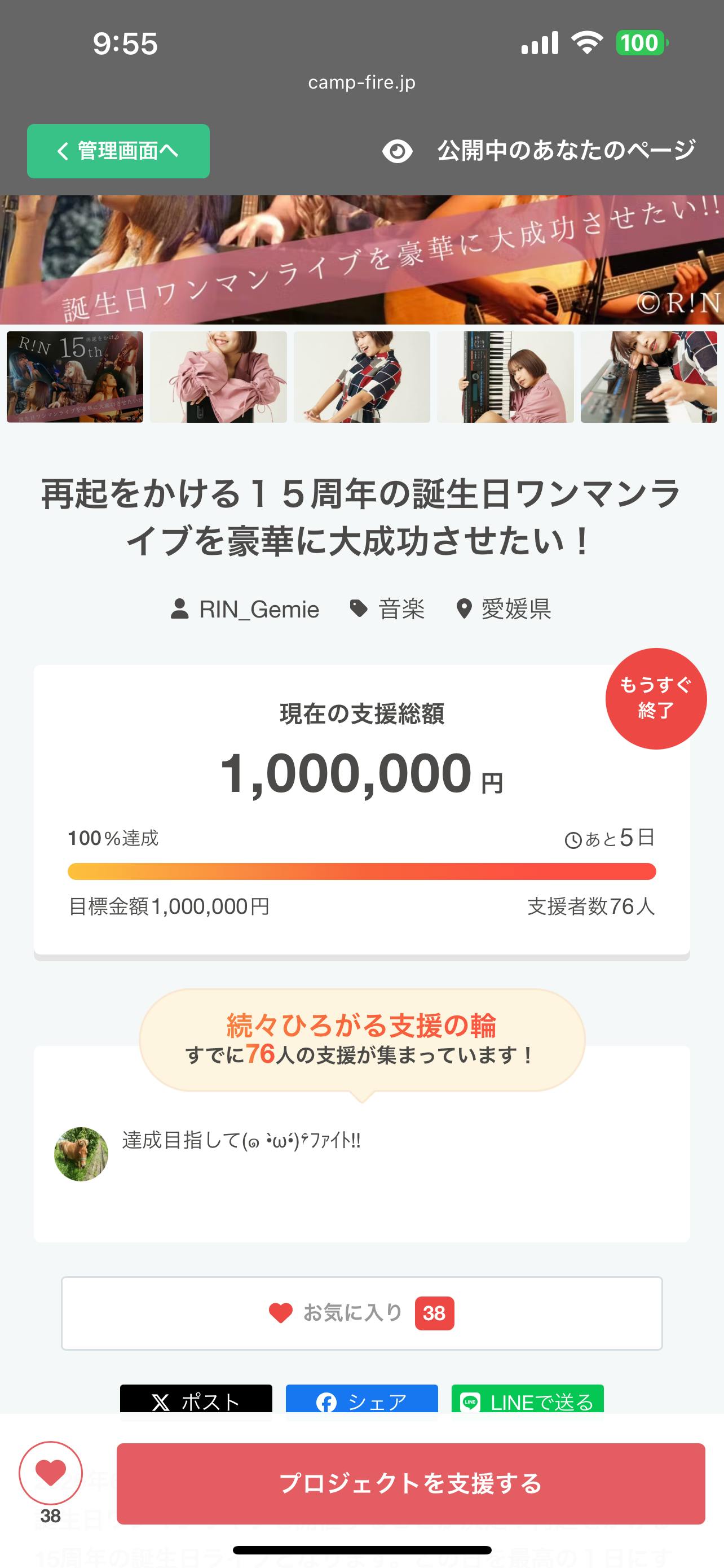 久しぶりのクラファンということもあり、とても不安な日々でしたが、残り5日という時間を残して達成できて本当に嬉しいです!
