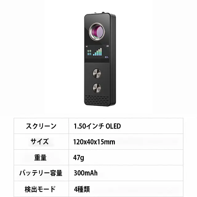 本製品は無線信号探知モードを搭載し、盗聴器やワイヤレスカメラなどの不審な無線デバイスを瞬時に検知できるため、プライバシーを守りながら安心して過ごせます。