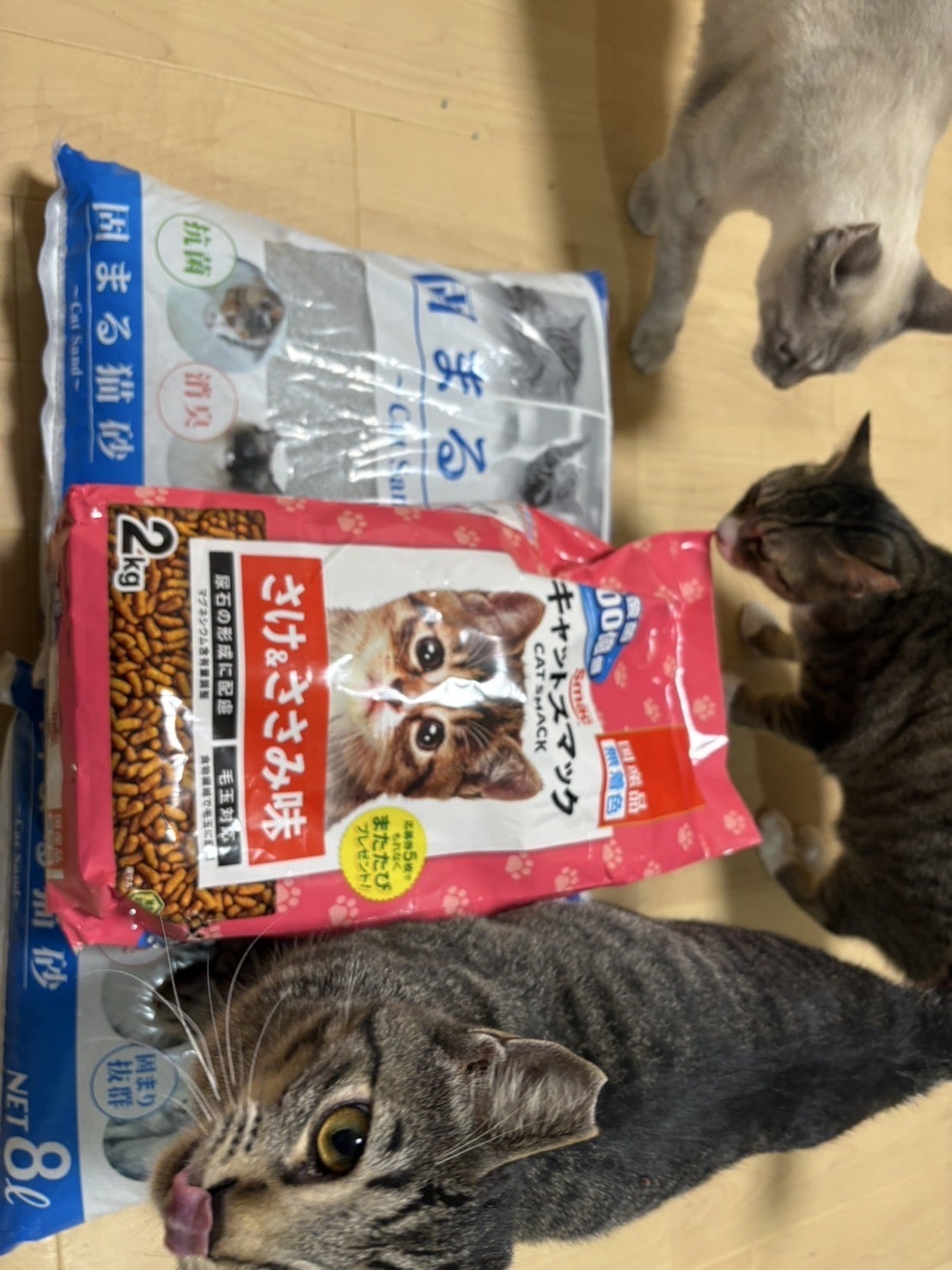 こちらは子猫さんたち大好きなカリカリと猫砂を送って頂きました!