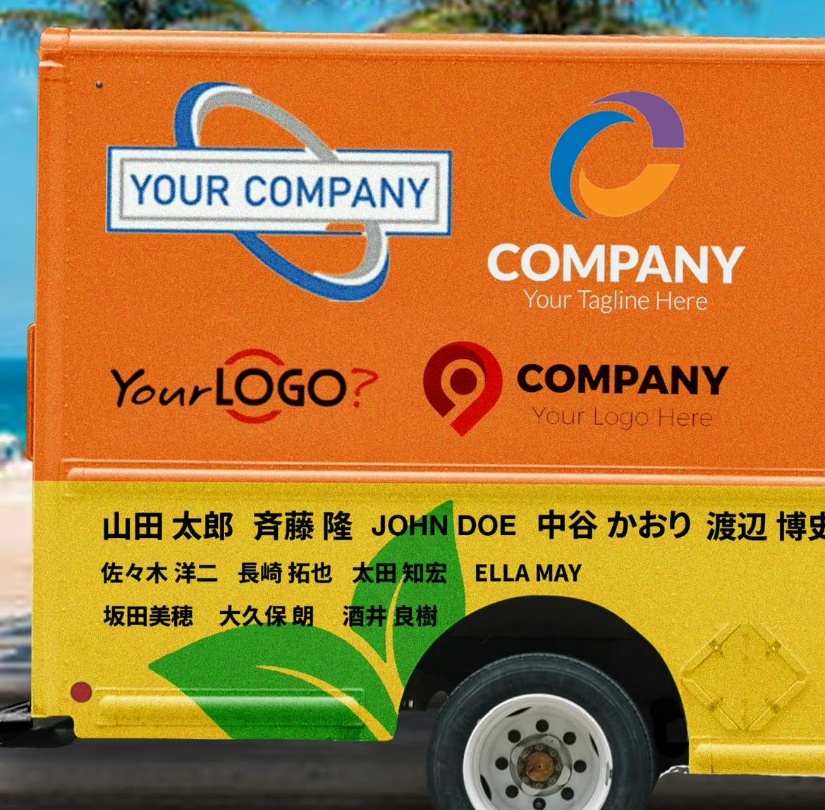・  スポンサー様のお名前を、沖縄を走る1.5tのキッチンカーに大きく掲載!!
