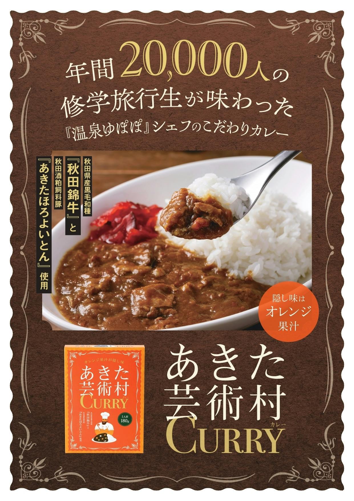 年間20,000人の修学旅行生が味わった「温泉ゆぽぽ」シェフのこだわりカレー、秋田の豊かな自然と食文化が詰まったその味わいを是非この機会にご賞味くださいませ!