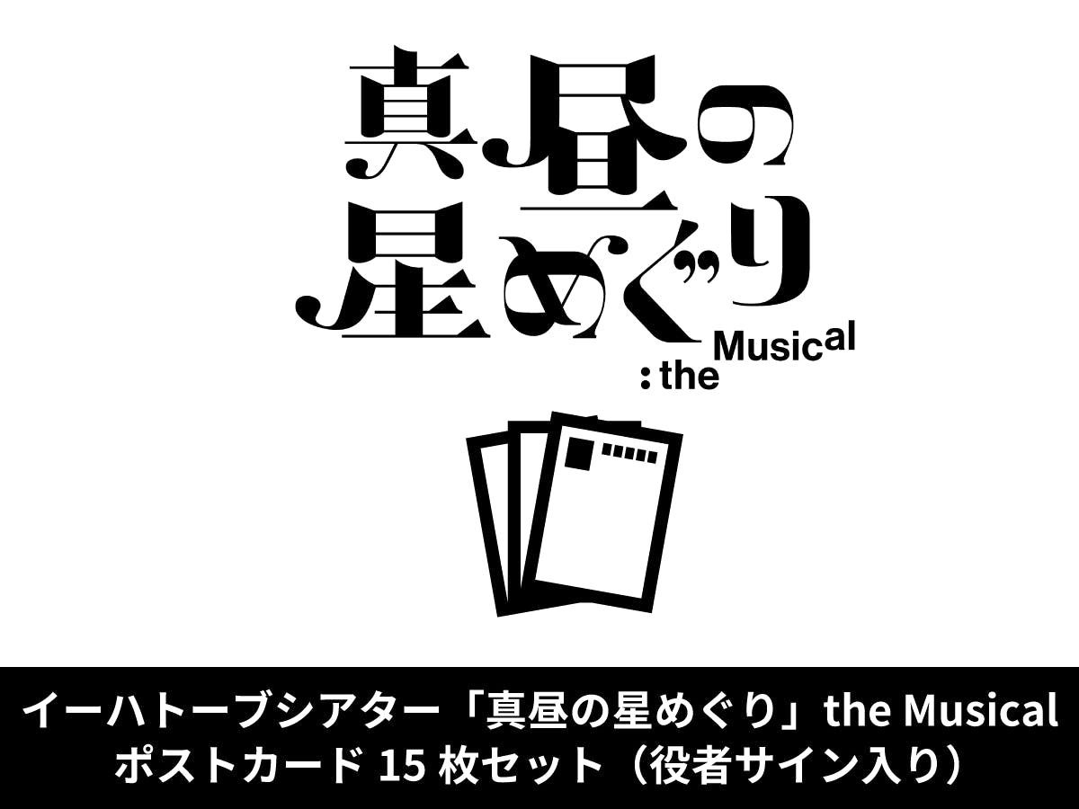 真昼の星めぐりの出演キャスト14名分に全員集合写真を加えた15枚セットをお送りする予定です。また、出演キャストのフォトには合わせて役者のサインをプリント予定です。ここでしか手に入らないグッズとなっておりますので、是非ご注目くださいませ!