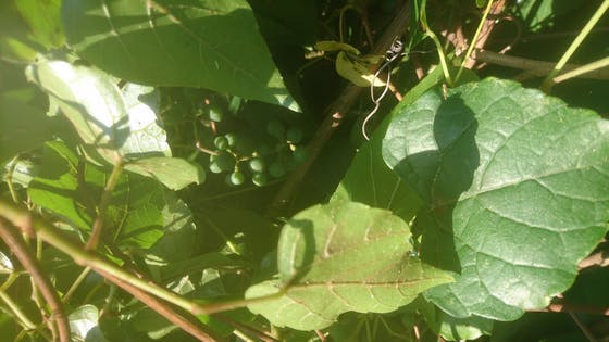 今日も作業日です もう夏?って位に暑い で ブドウ沢山なっています まだまだ食べられる大きさじゃないけど 自然薯や果実 こんなのが沢山ある山って最近少ないんです こんな山大切にしたいですね