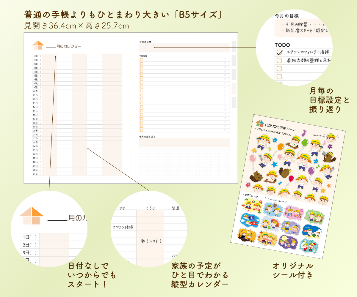 「住まリフォ手帳」は、施主の皆さんの「頼れる相棒」となってリフォームを計画的に進めるための一冊です。
