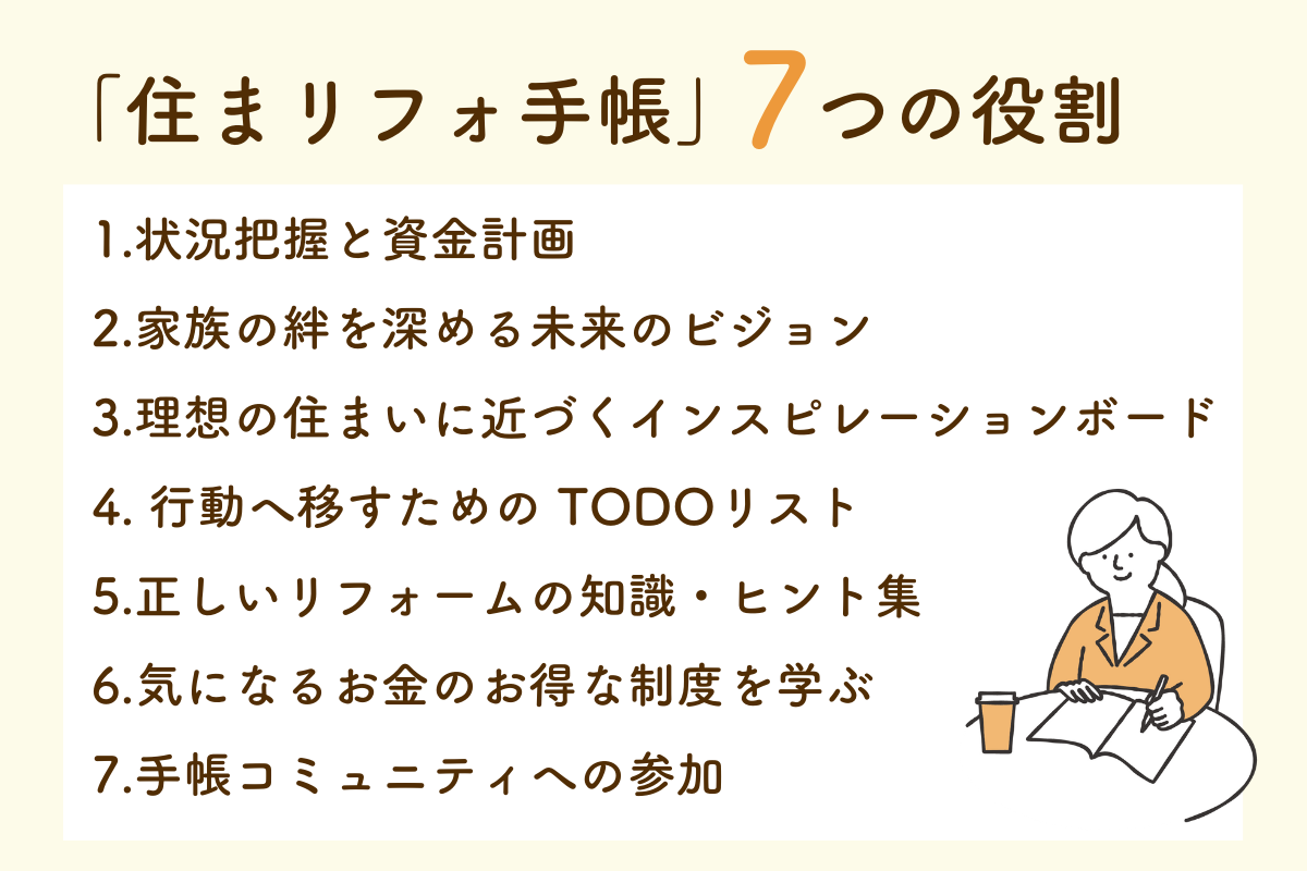 「住まリフォ手帳」には次の7つの役割を持たせました。