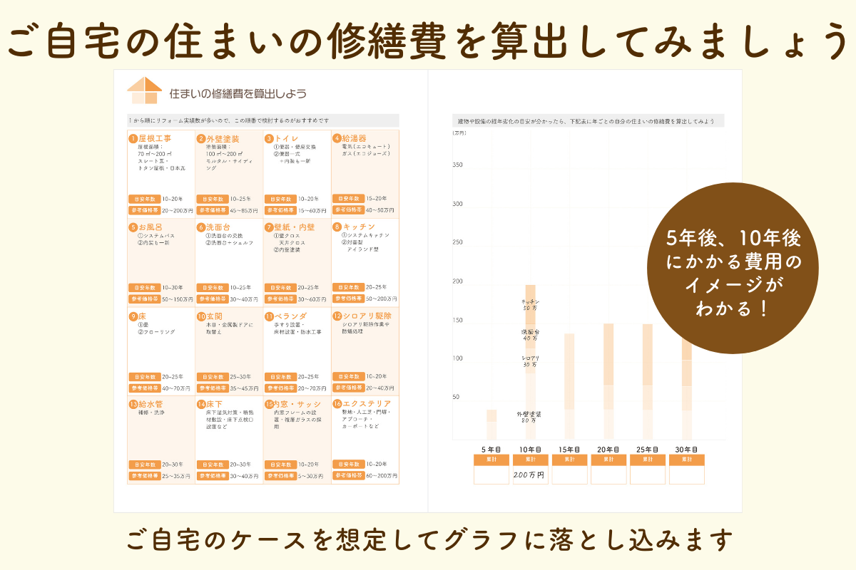 ご自宅のケースを想定して、いつかやってくるリフォーム工事費を算出してみましょう。