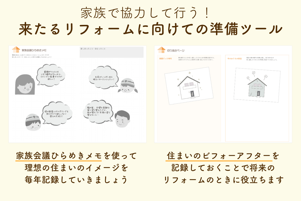 マイホームの現状を家族で共有し、将来のリフォームに向けて少しずつ準備ができるようにしています。