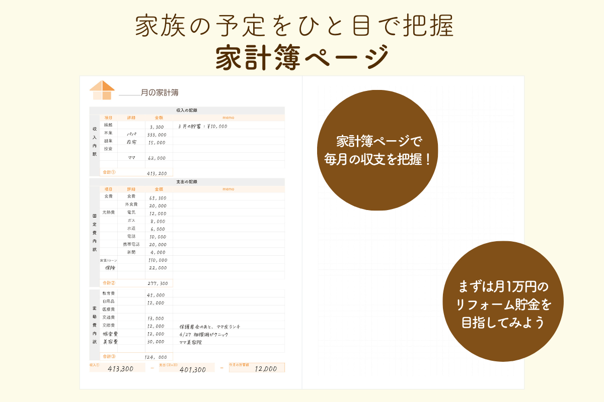 住まいの修繕費やリフォームの時期を把握し、毎月の収支やリフォーム資金を定期的に記録していくことで、無理なく計画的にリフォーム資金を貯めることができます。