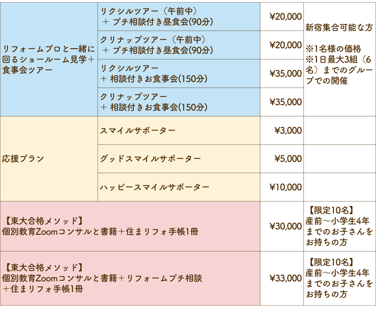 将来のリフォームに向けて、時間をかけてじっくりと準備することができます。
