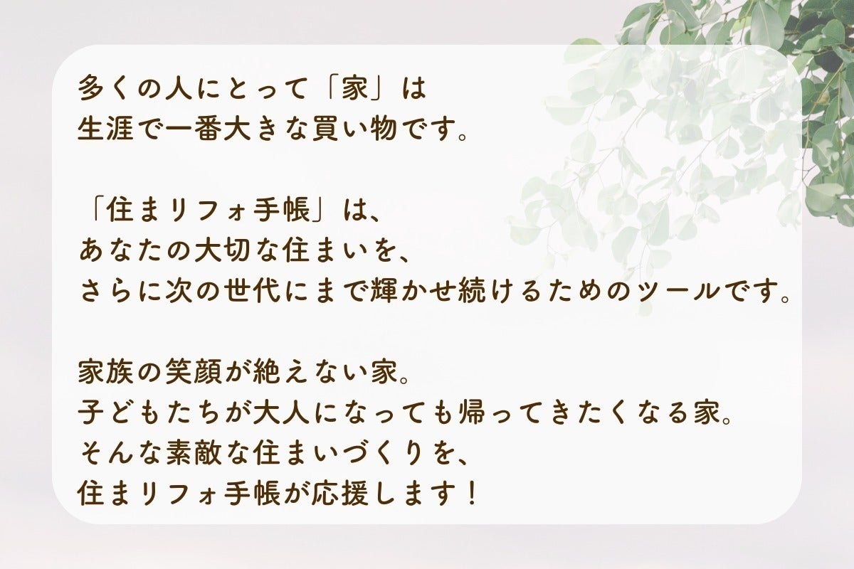 「住まリフォ手帳」は、あなたの大切な住まいを、