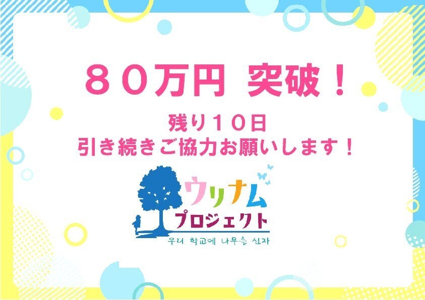 目標金額の80%を達成しました!