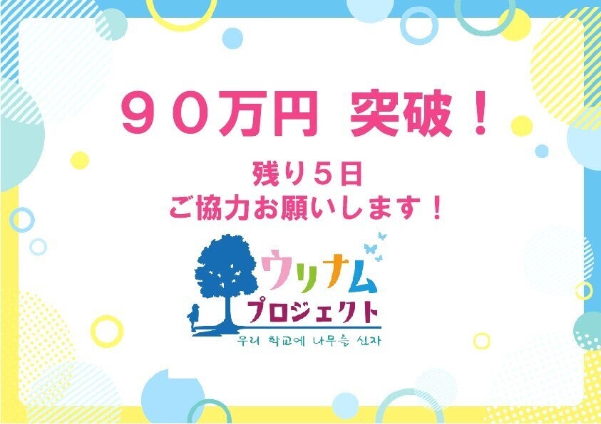 2025/04/24 11:55クラウドファンディングも残すところあと1日。本日、目標金額の100万円を達成しました!支援してくださった方、宣伝してくださった方、本当にありがとうございます。あと1日、最後までご協力お願いします!!ウリハッキョに思いを込めて木を植えましょう!우리 학교에 나무를 심자! もっと見る