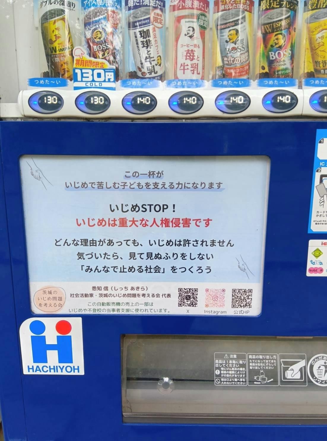 茨城県坂東市の八坂公園にある自動販売機にて、「いじめ防止の啓発ポスター」を掲示いただけることになりました!
