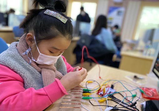 プログラミングだけでなく、ものづくりと音楽も一緒に学べる融合教育を提供します。