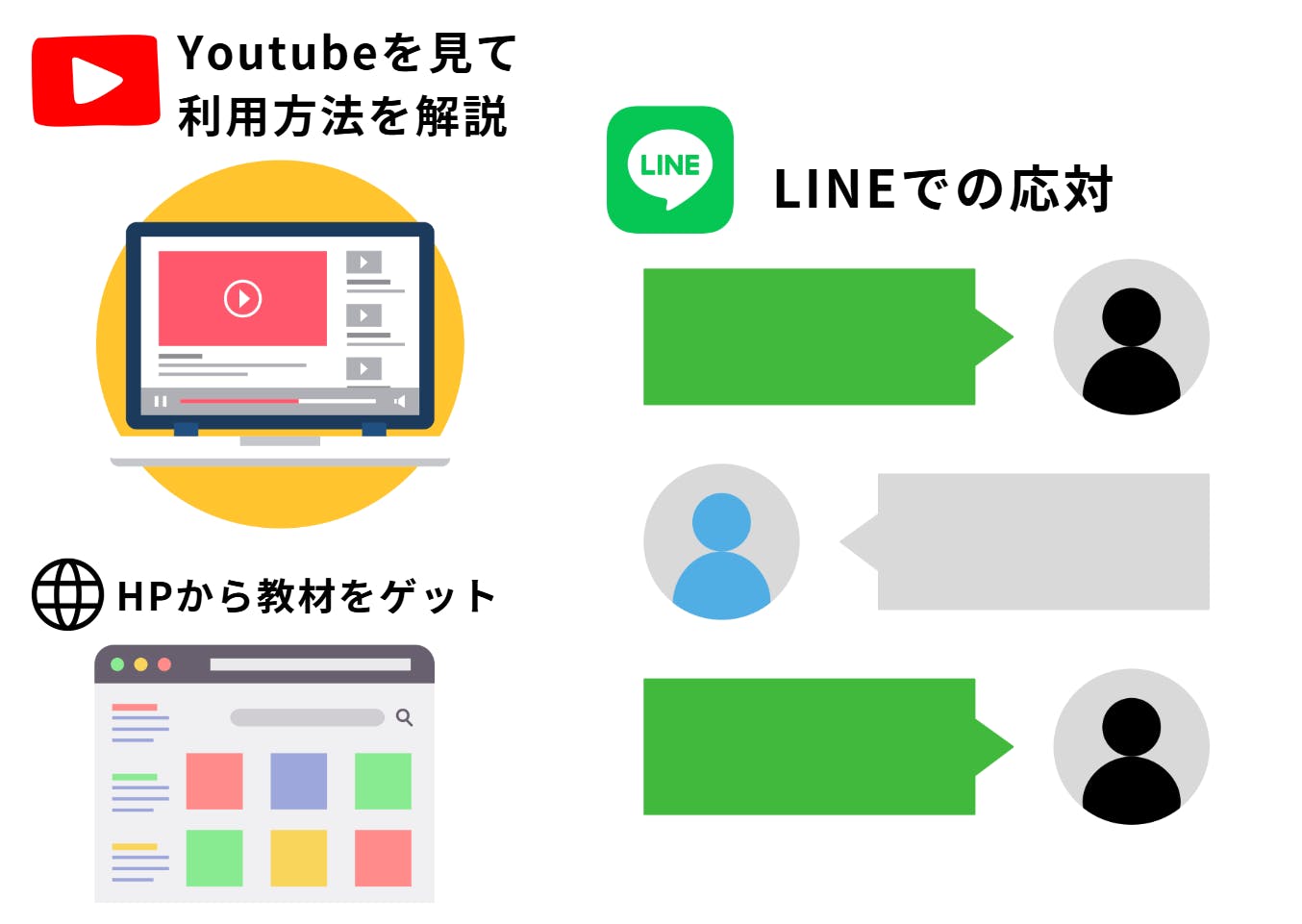 こどもとのコミュニケーションに集中できるよう、動画から授業に必要な資料まで全て揃えました。