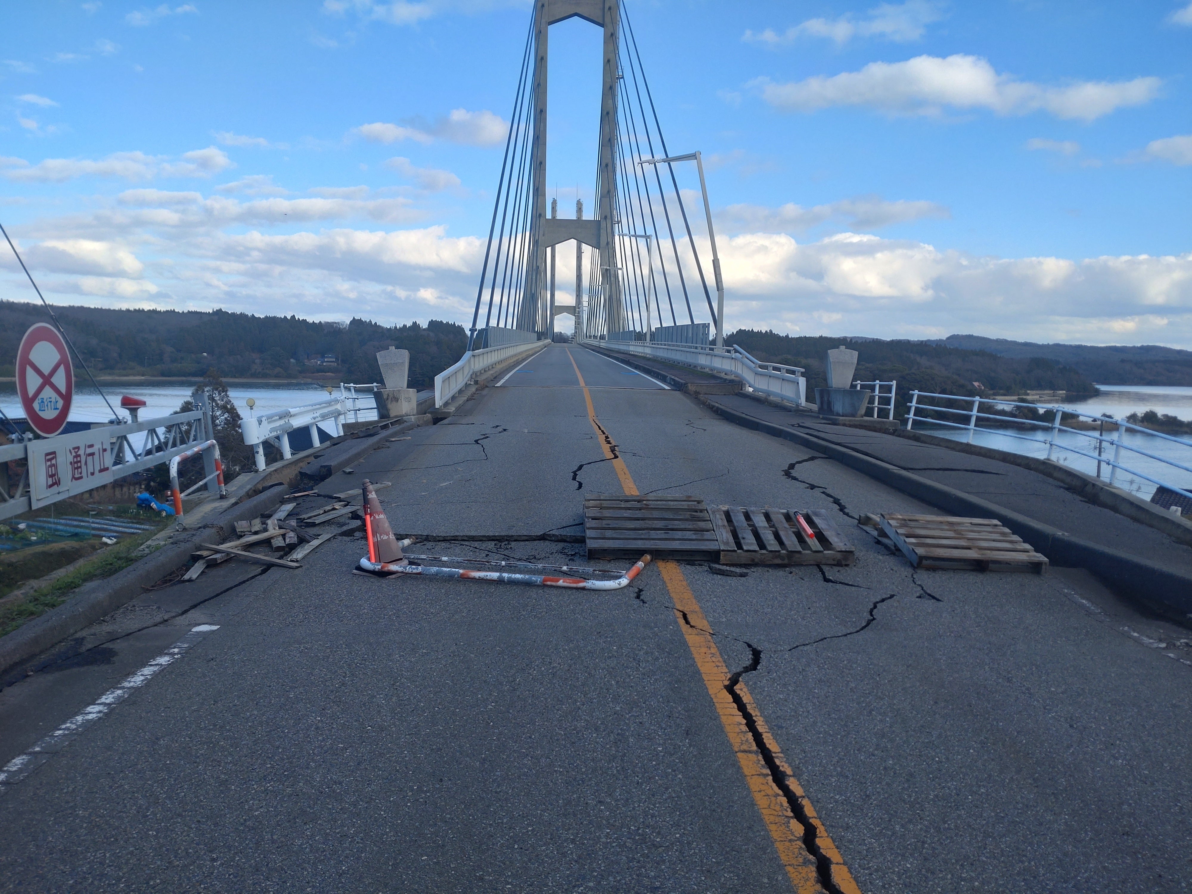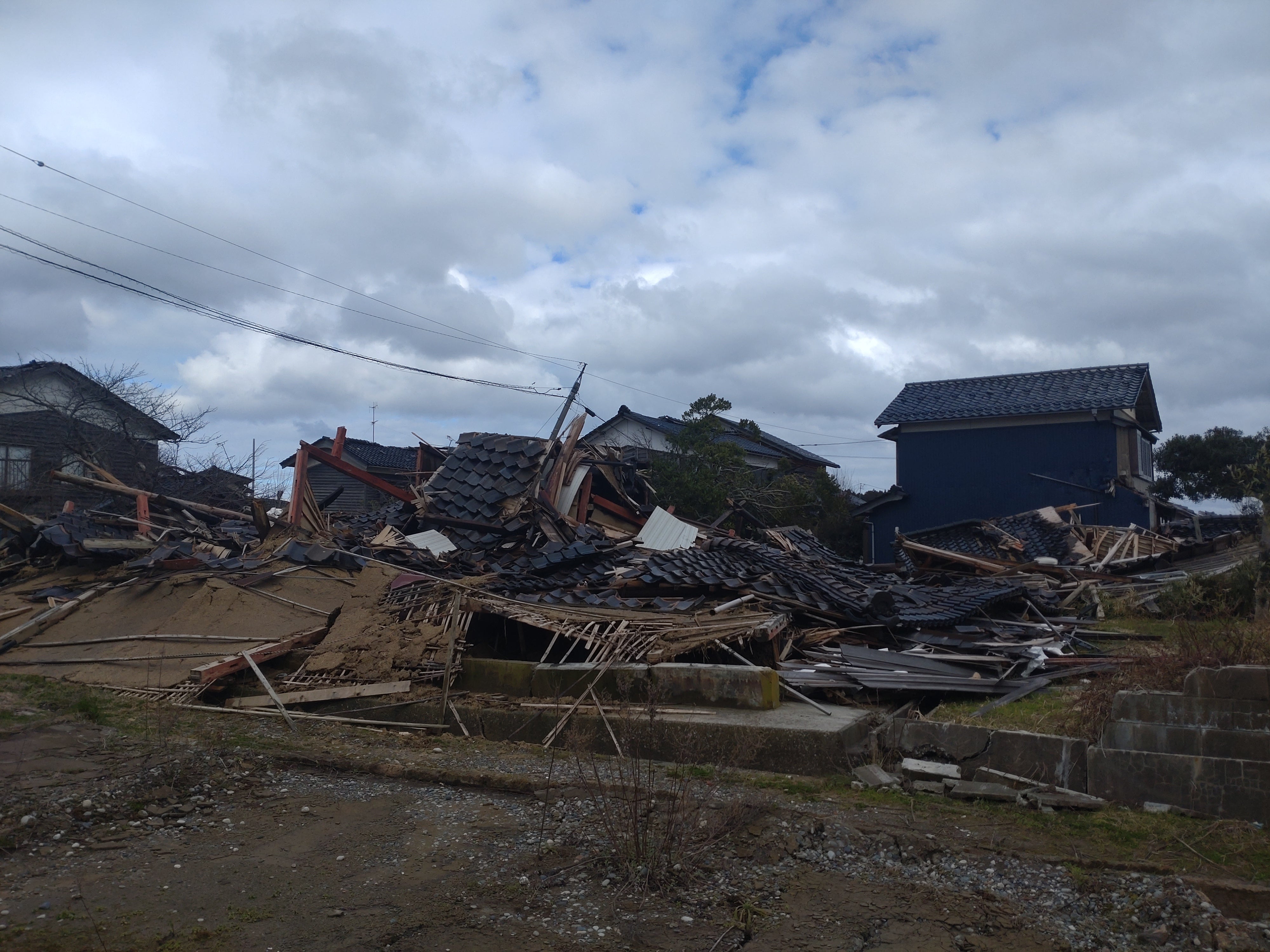 受けたため通行止めになり(令和7年6月制限付き通行可能に)近隣の住宅はほぼ全壊や半壊し余震も