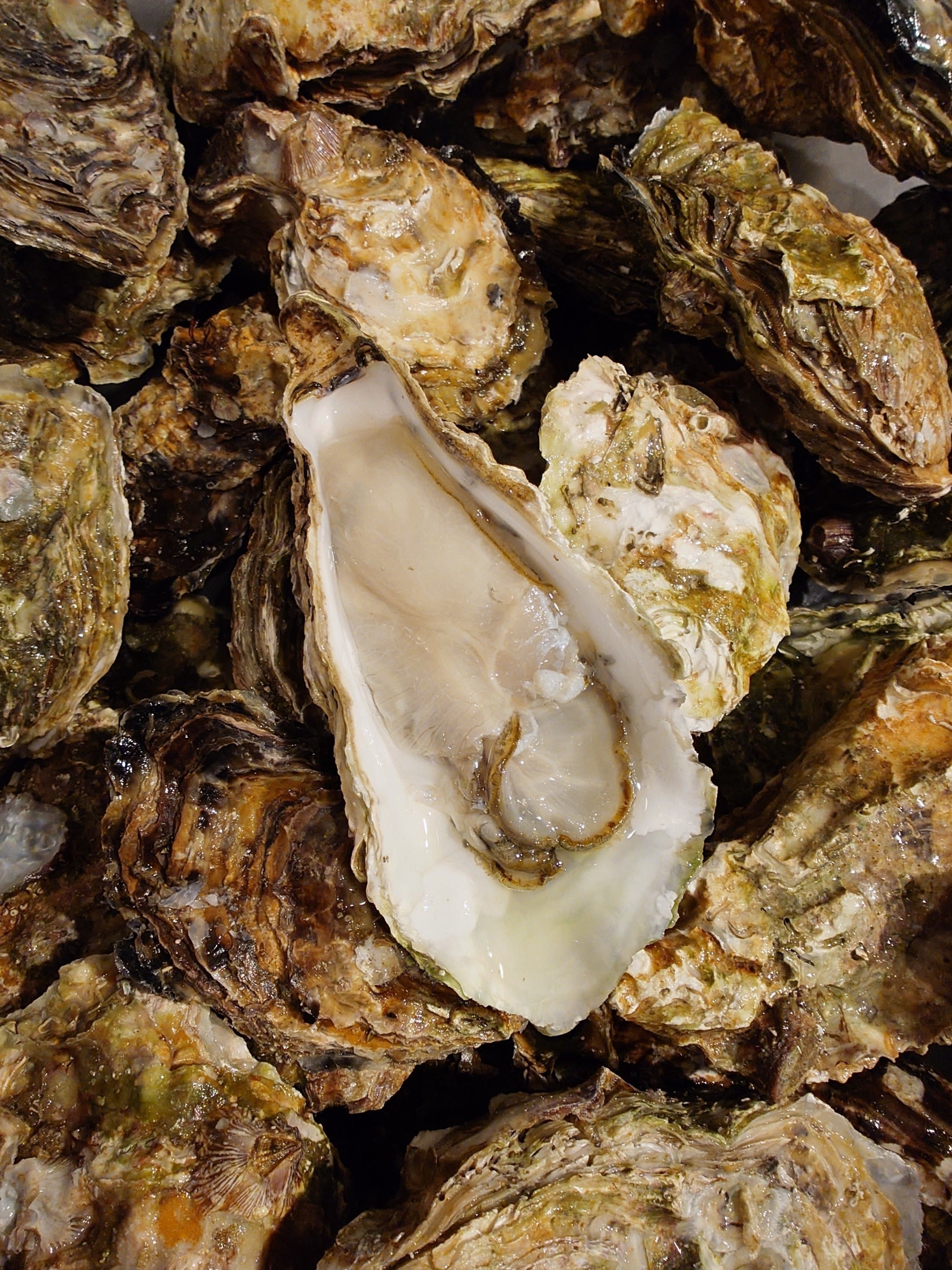 週2回自社便で七尾市中島町の生産者さんのもとへ伺い仕入れた、養殖真牡蠣、天然真牡蠣、