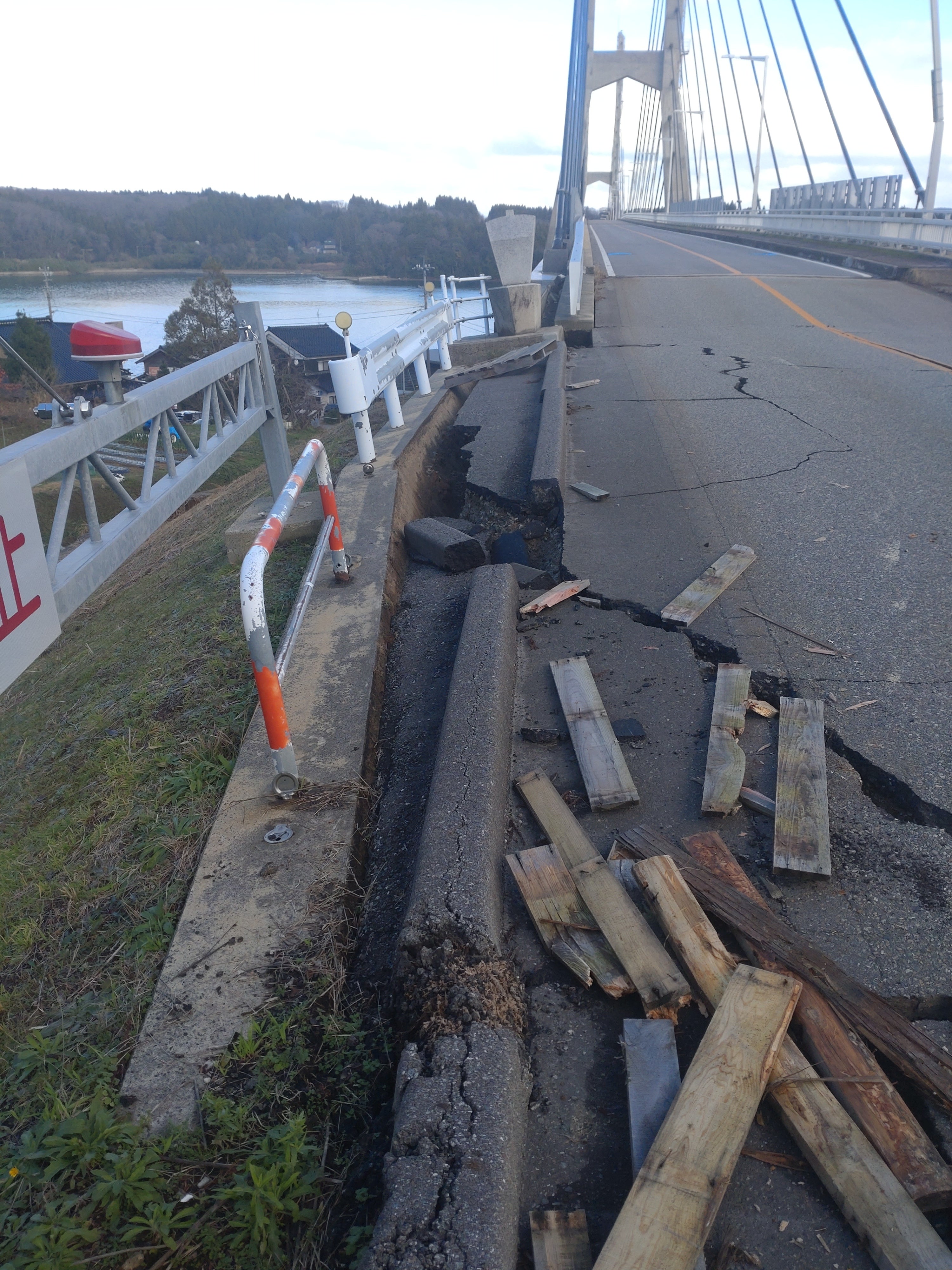 受けたため通行止めになり(令和7年6月制限付き通行可能に)近隣の住宅はほぼ全壊や半壊し余震も