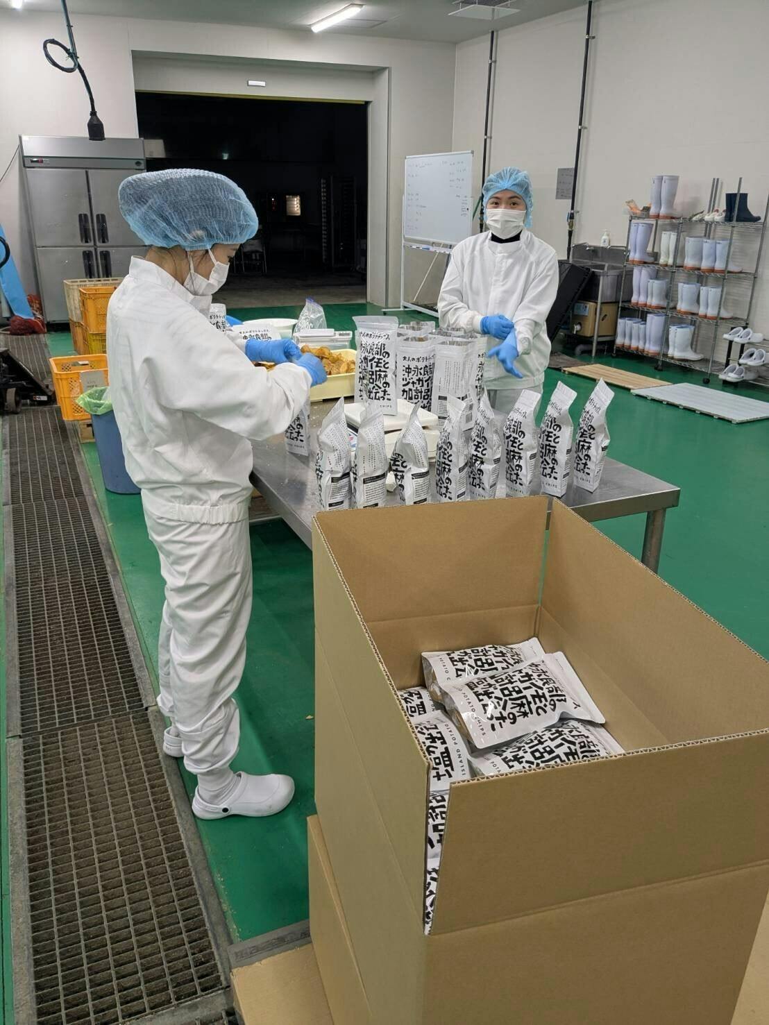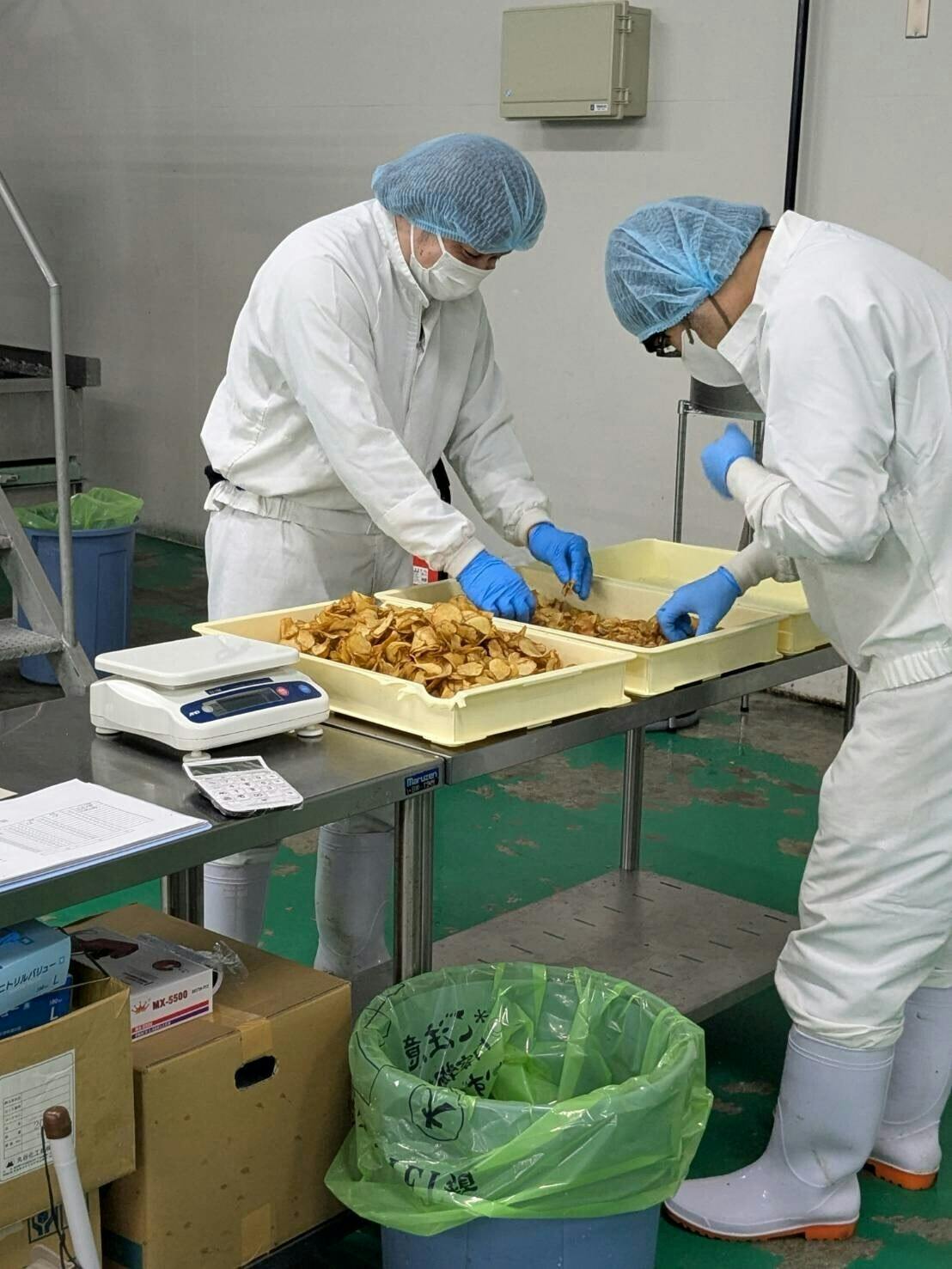 阿蘇工場で、いよいよジャガイモの、真空フライが始まりました。
