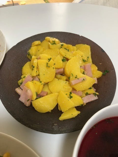こちらは、昨日の我が家の夕食の食卓に出たインカのめざめのポテトサラダです。
