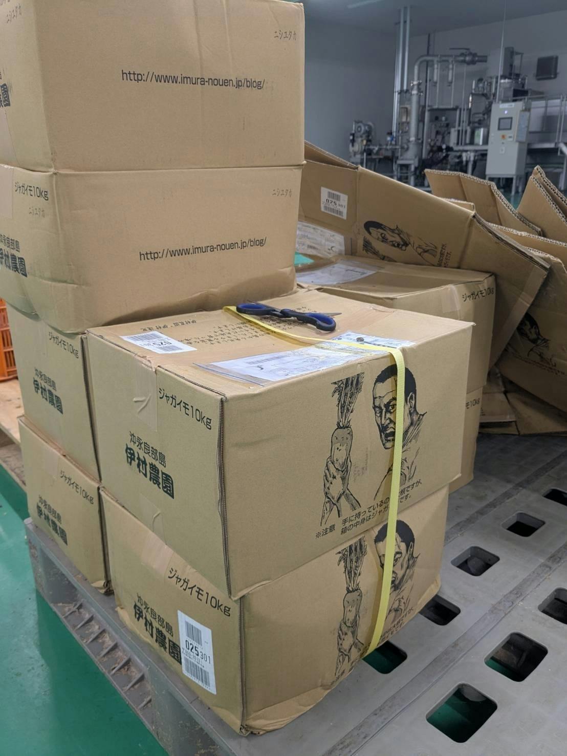 3月10日ポテトチップス用の新ジャガイモを阿蘇工場に発送しました。 試行錯誤しながらやっとここまで来ました。最後にインカのめざめで作った試作品は、まだ改善点がいくつかありました。何度か行った試作品のデータを参考に、改善を加え、いよいよこれから本番です。不安な気持ちもありますが、楽しみにして待ちます。完成品が沖永良部島に届くには、3月末の予定です。