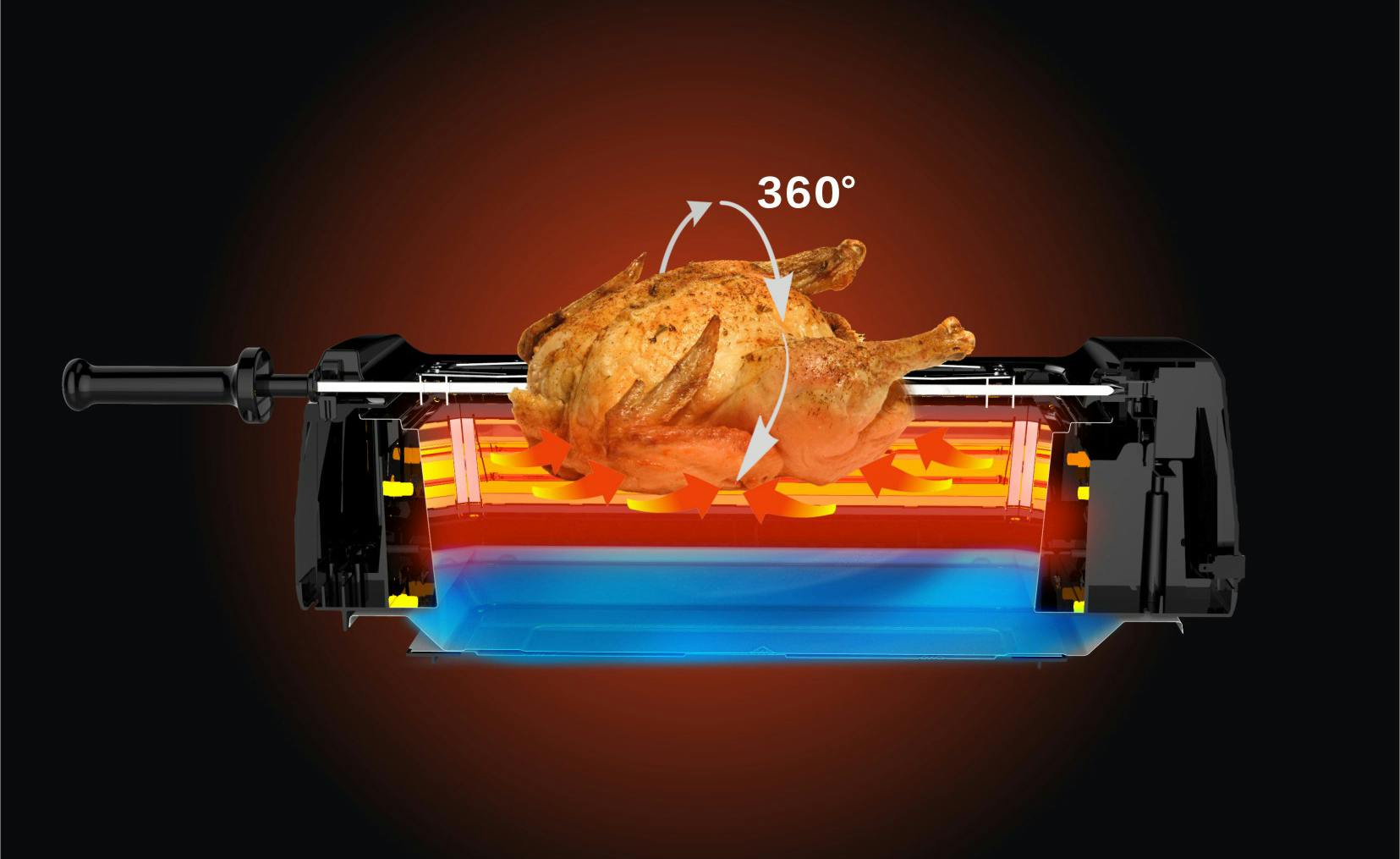 ③独自の自動回転構造とタイマー機能により、串焼きや丸鶏のローストチキンもじっくりと焼き上げます。