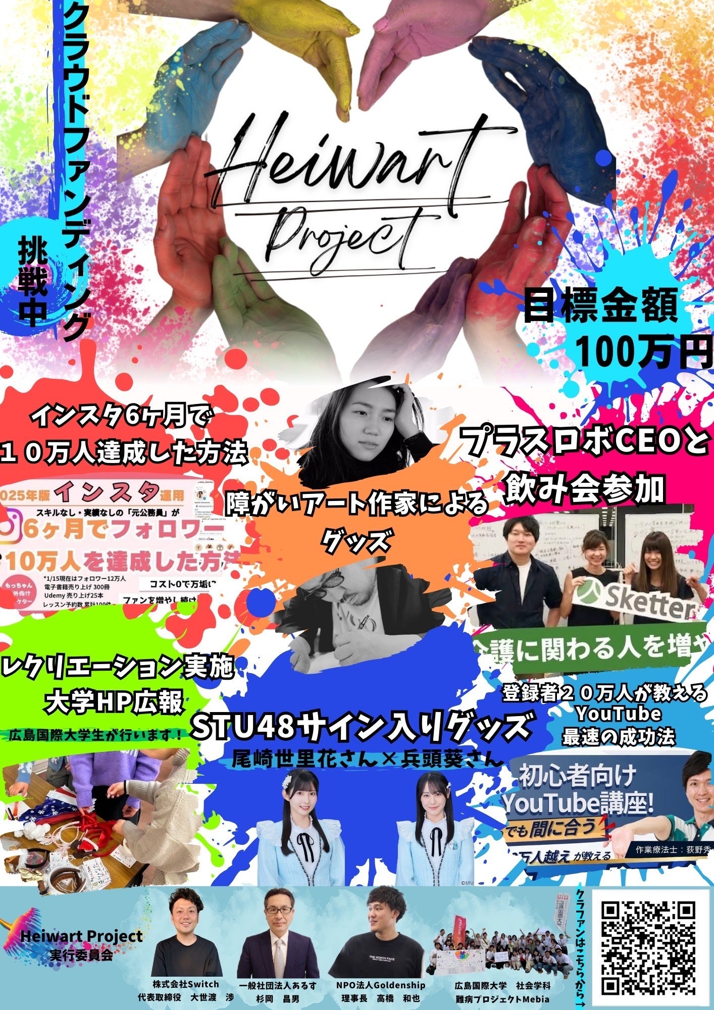 平和の再考と次世代への継承の場として、広島空港にて、アートやマルシェを通し、平和文化を伝えていく。差別をせず、違いを認め、誰しもが(ハンディーキャップをお持ちの方も)輝けるインクルーシブな場所を広めていくきっかけにする。