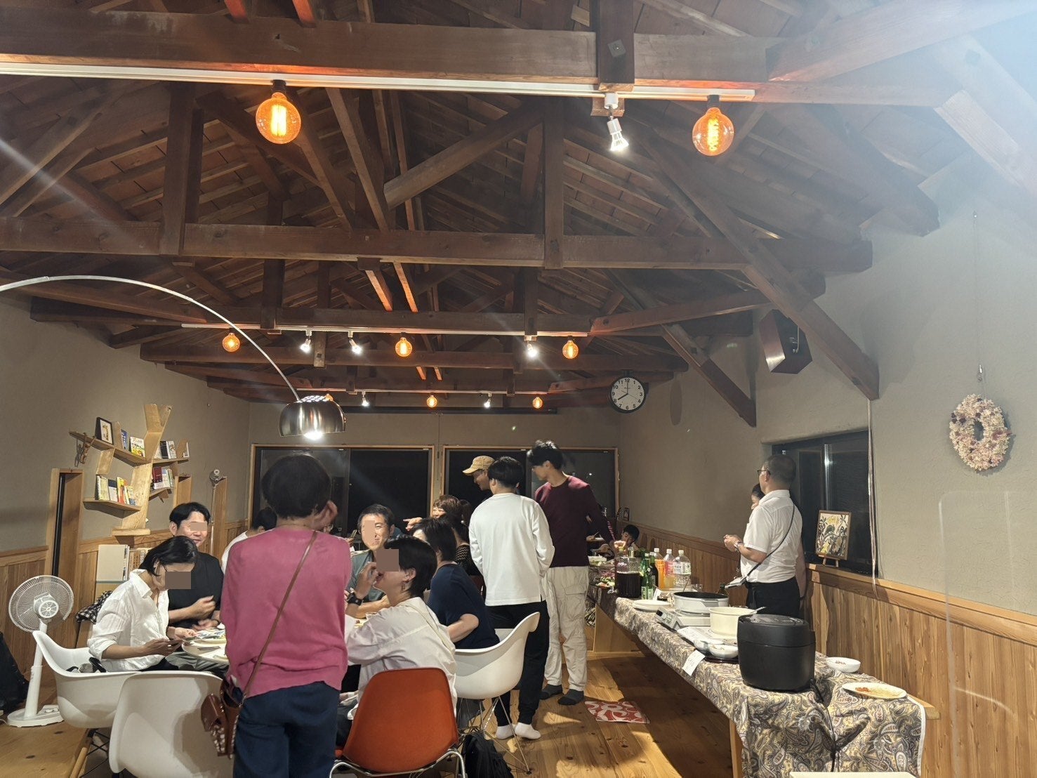 地元食材クラファンを応援してくださった方のお店の商品それぞれがオススメする商品や手づくり品などが食べきれないほどに並び美味しい食事と楽しい笑い声や意外な共通点や出会いなど時々円に入って参加し基本は円の外から楽しく眺めていました。