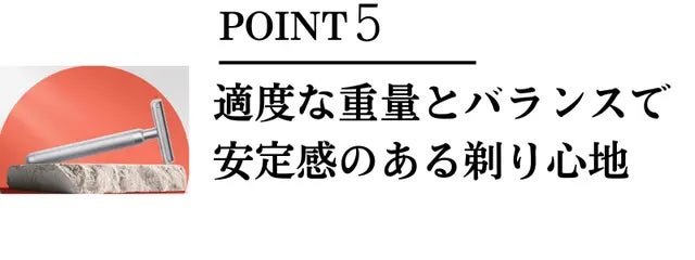 Premium Metal Razorは、重量感のある98gの重さと、クロム仕上げの亜鉛合金の素材が特徴です。 伝統的なローレット加工のハンドルで、刃の間隔は0.76mmとなっています。この重量感により、自然と手元が安定し、力を入れずにスムーズに剃ることができます。太いヒゲにも適しており、深剃りが可能で、しっかりとした剃り味を求める方におすすめです。