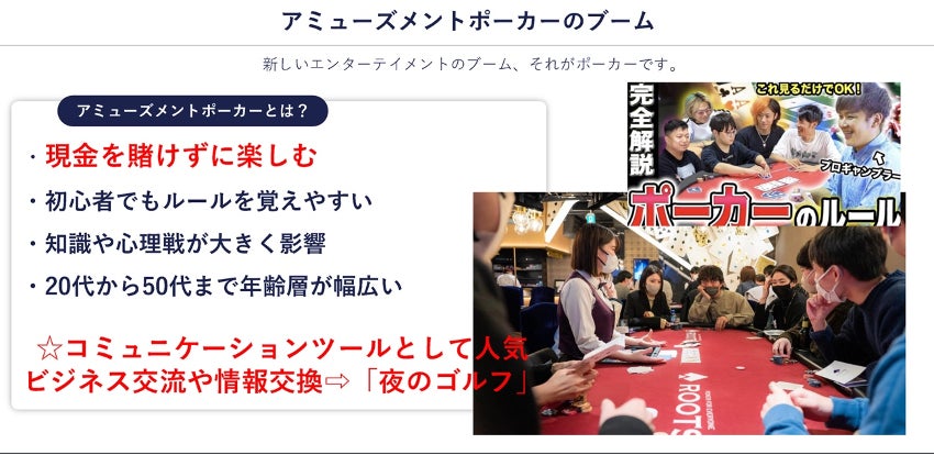 そして、2025年2月には地方最大級のポーカー大会「XPT山口」を主宰。「エンターテイメントは正義」を合言葉に、全国各地のアミューズメントポーカー大会に参加してポーカー大会のノウハウを学ばれています。またポーカーを通じて脳を鍛える学びやコミュニティ形成を促す活動として、企業さま向けの社員教育や親子向けポーカー教室なども開催して、健全なアミューズメントポーカーの普及や街づくり活動にも積極的に取組む本当にナイスガイです。
