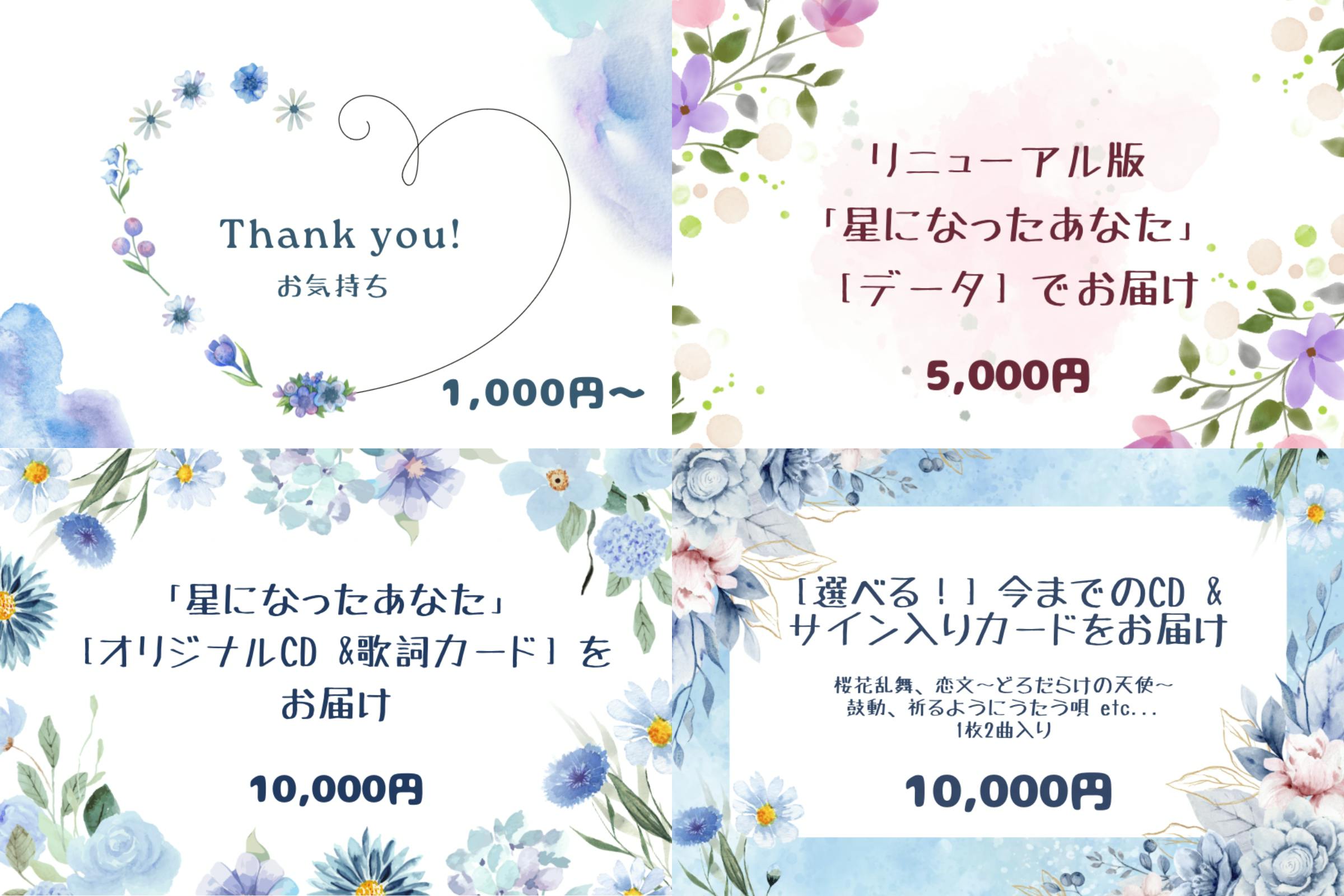 リニューアルした「星になったあなた」のCDや、出張ライブなど