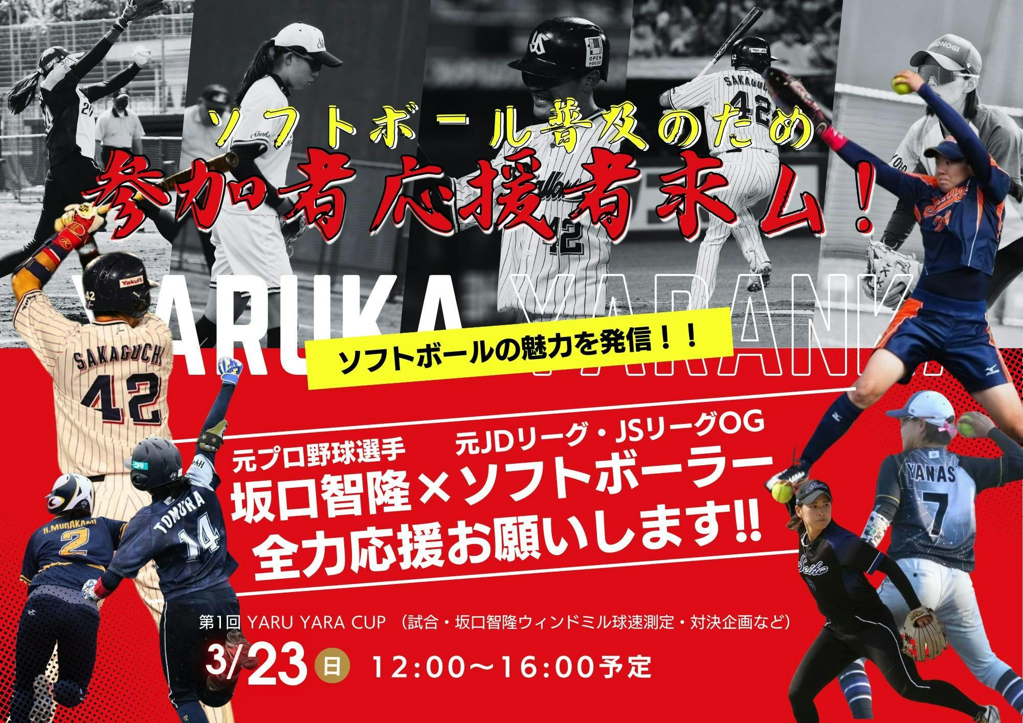 こんにちは、元プロ野球選手の坂口智隆です。ソフトボール世界最高峰リーグJDリーグのOGたちと結成した「TEAM YARU YARA」のみんなとソフトボールの普及・野球とソフトボールの架け橋になる活動をしていきます。また2024年夏からYouTubeチャンネル「坂口智隆の伸び代しかない」(以下、伸び代CH)では主にソフトボールの魅力を発信しております。伸び代CHを一緒に運営している湯山とソフトボーラーたちと共にソフトボールのイベントを企画いたしました。ご支援・ご協力よろしくお願いいたします。